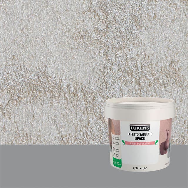 La finitura decorativa effetto sabbiato Luxens è una pittura a base minerale. Nella sua composizione troviamo particelle di sabbia che danno al composto un effetto granuloso e, perciò, ricco di riflessi. Noterai effetti di luce e ombre altamente naturali dati dai granelli di quarzo e sabbia. È realizzata con un legante speciale derivato da una biomassa sostenibile in dispersione acquosa. Adatta ad ambienti interni, puoi applicarla su pareti e soffitti in cucina, salotto e camera da letto. È una pittura altamente ecologica: ha un bassissimo livello di COV. Essendo composta da materiali organici, per la sua produzione vengono ridotte al minimo le emissioni di CO2 (classe A+). Inoltre, migliora l'aria degli ambienti interni.