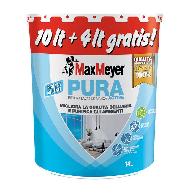 1. Pittura murale lavabile Max Meyer Pura Active bianco 14 L