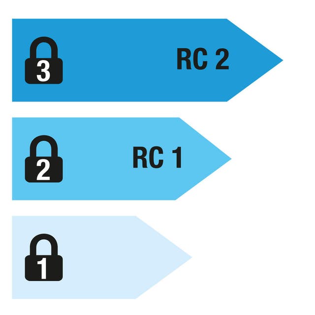 RC 2: protezione da tentativi di scasso con l’uso di attrezzi come cacciavite, tenaglie, pinze, cunei e chiave inglese.