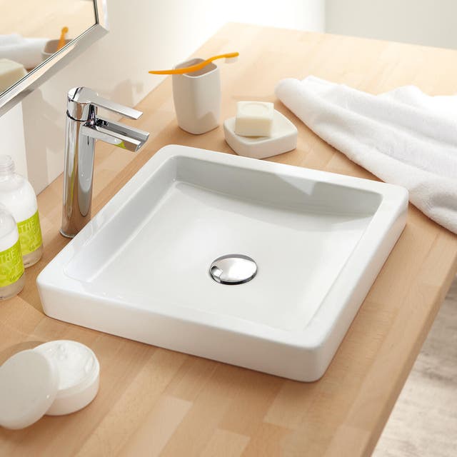 sul mobile o sul piano: se opti per un lavabo d’appoggio, un miscelatore a canna alta da posare sul piano è la scelta ideale. Questo tipo di rubinetto è più alto per poter superare l’altezza del lavabo. Si può posizionare dietro o lateralmente al lavabo. Con la sua presenza discreta ed elegante, mette in risalto il lavabo d’appoggio.