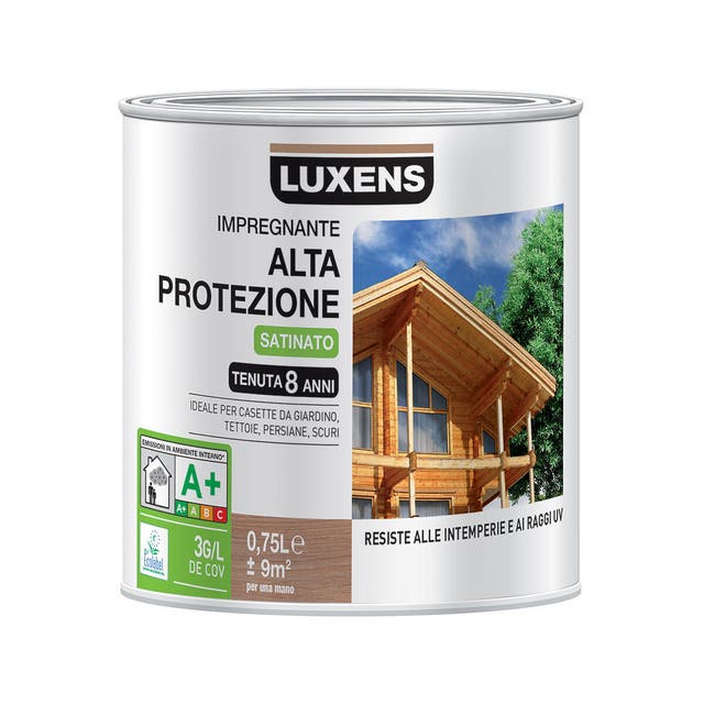 Il miglior impregnante con durata fino a 6 anni è consigliato per utilizzo in esterno perché è resistente ai raggi UV. Se lo scegli ad acqua è inodore e indicato anche in interno. Ideale per casette da giardino, tettoie, coperture, travi e persiane.