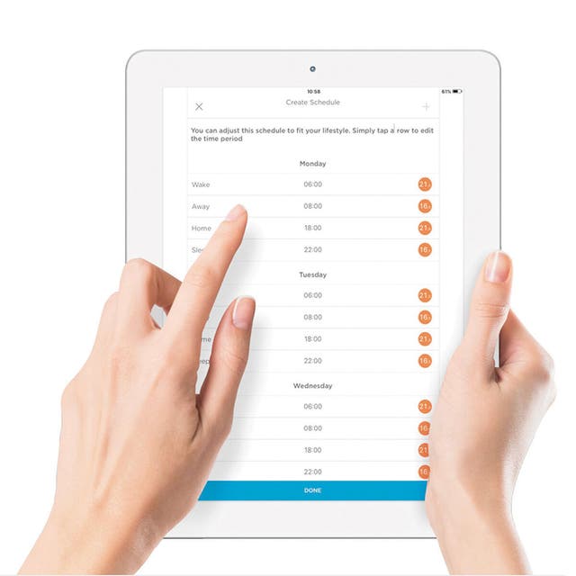 rilevamento presenza: un sensore integrato nel termostato fa partire il riscaldamento solo se ci sono persone in casa e lo spegne quando rileva la casa vuota.