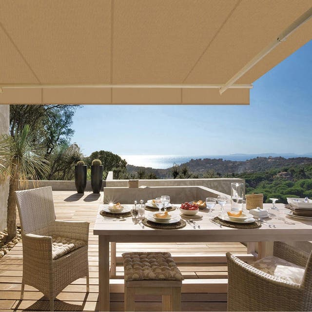 Il telo è la parte più importante di una tenda da sole, che ti protegge dal forte sole e dal calore, perciò, deve essere in grado di schermare i raggi solari e deve essere resistente agli strappi, all’usura e agli agenti atmosferici come gelo, acqua e vento.