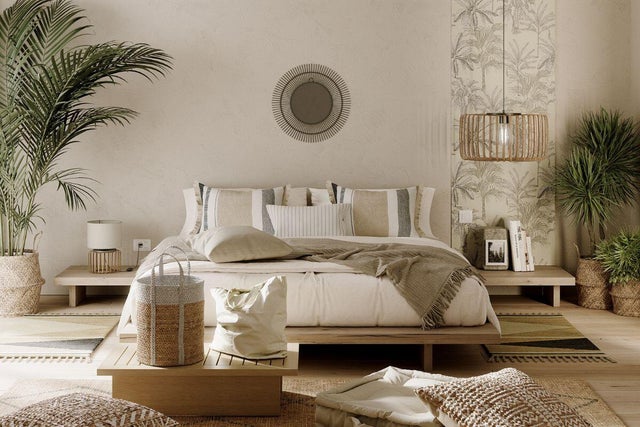 Camera da letto boho per la casa al mare, effetto “wow”