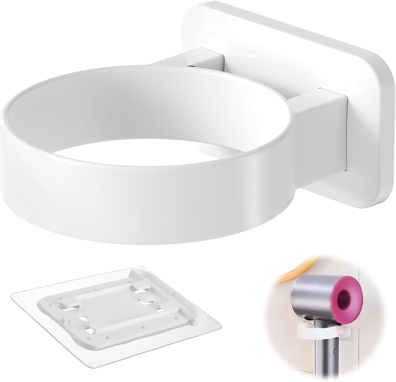 Installazione senza fori: installa facilmente questo porta asciugacapelli a parete utilizzando l'adesivo resistente incluso, senza praticare fori. Installazione rapida e senza danni.
