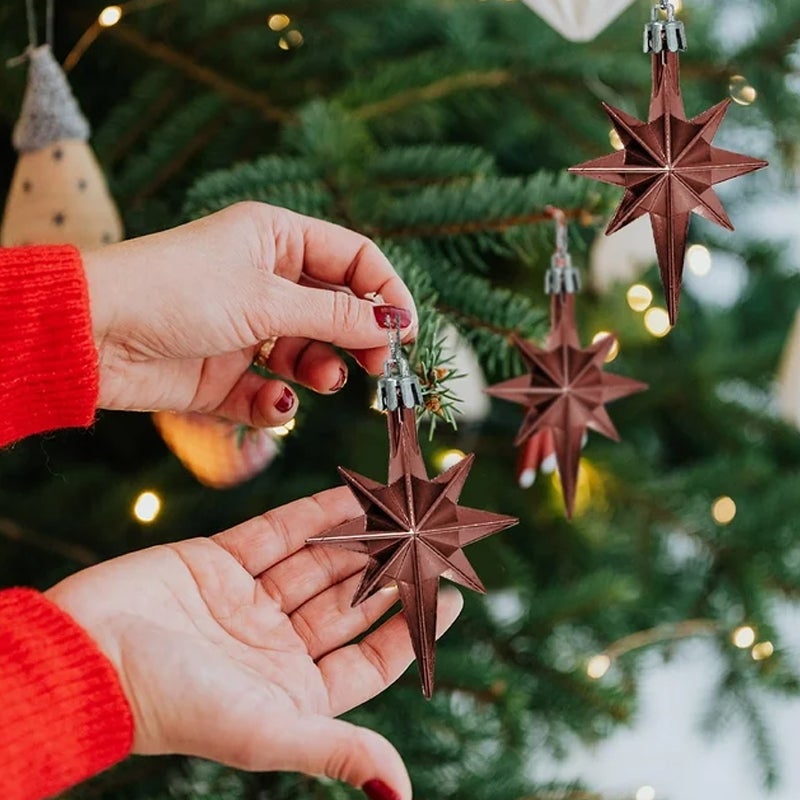 12 decorazioni a forma di stella a 8 punte da 8 cm - Plastica galvanizzata - Decorazioni per alberi di Natale, location e feste