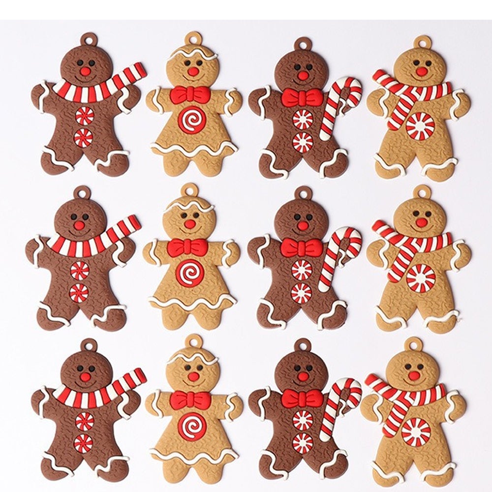 Set versatile di decorazioni natalizie: questo set di decorazioni natalizie contiene 12 pezzi, tra cui barrette di zucchero e divertenti figure di pan di zenzero. Misurando 7 cm x 5 cm ciascuna, questi graziosi pendenti renderanno il tuo albero di Natale particolarmente attraente e accogliente.