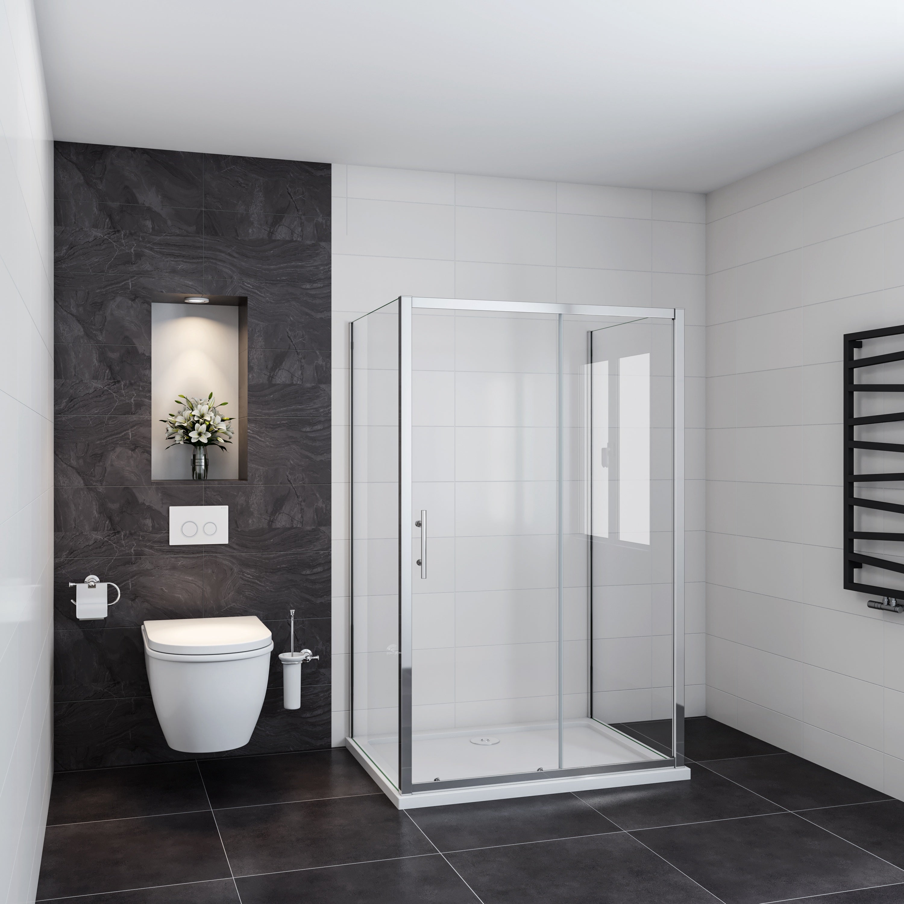 185 cm Box Doccia a Tre Lati Porta Scorrevole con Due Pareti Laterali 76x160x76 cm Vetro Temperato Trasparente 5 mm Profilo Cromato Lucido