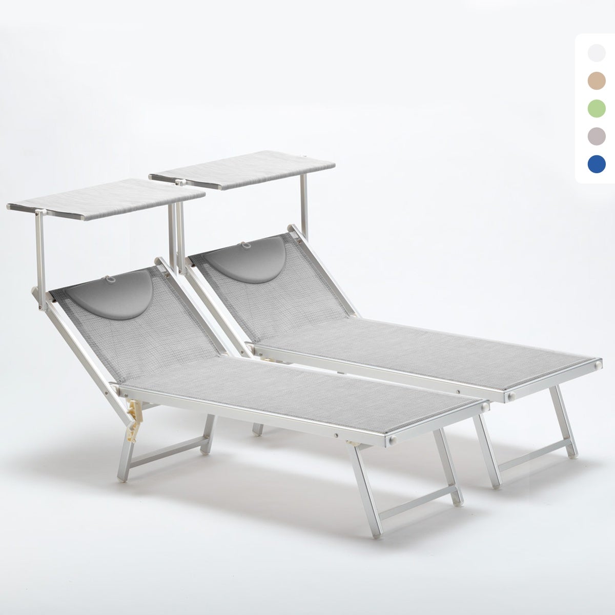 2 Lettini spiaggia mare prendisole professionali in alluminio Italia - Grigio