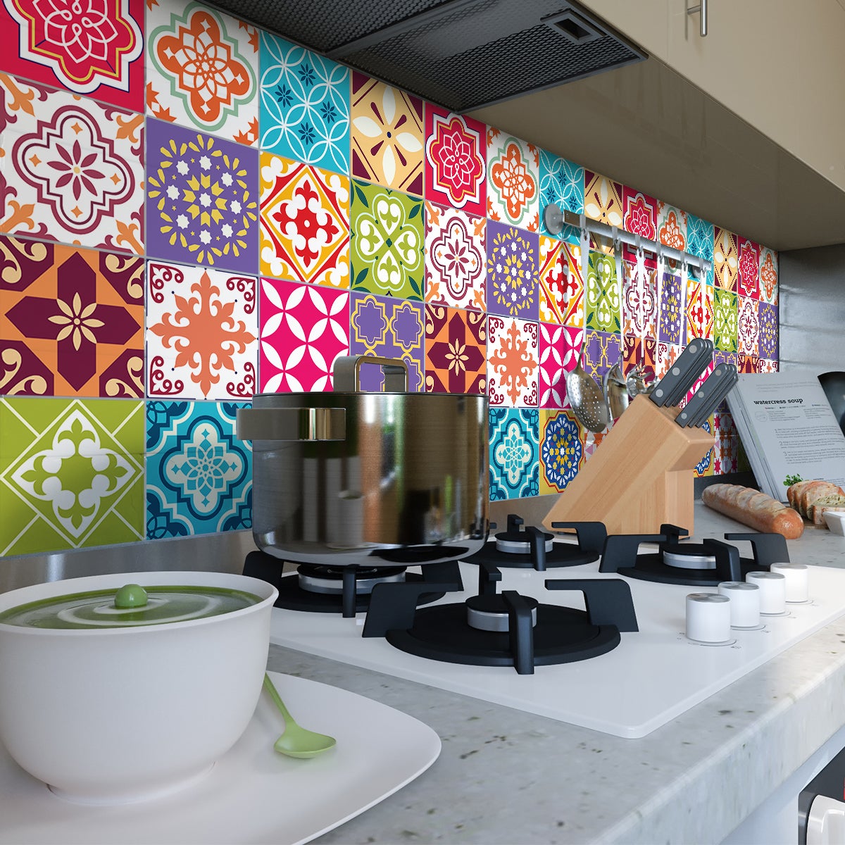 Area coperta per 1 quantità: 0.54 metro quadrato. Adesivi imitazione piastrelle per decorazione della casa ! Con adesivi piastrelle piastrelle di cemento e questo 24 adesivi piastrelle di cemento azulejos bastiano arredare la vostra casa è molto facile! Dimensioni di adesivi per piastrelle: Per i 40 x 60 cm, le adesivi piastrelle sono 10 x 10 cm Per i 60 x 90 cm, le adesivi piastrelle sono 15 x 15 cm Per i 80 x 120 cm, le adesivi piastrelle sono 20 x 20 cm Dove questi stickers murali incollare? Questi stickers murali piastrelle di cemento sono ideali per decorare le pareti della cucina e bagno.