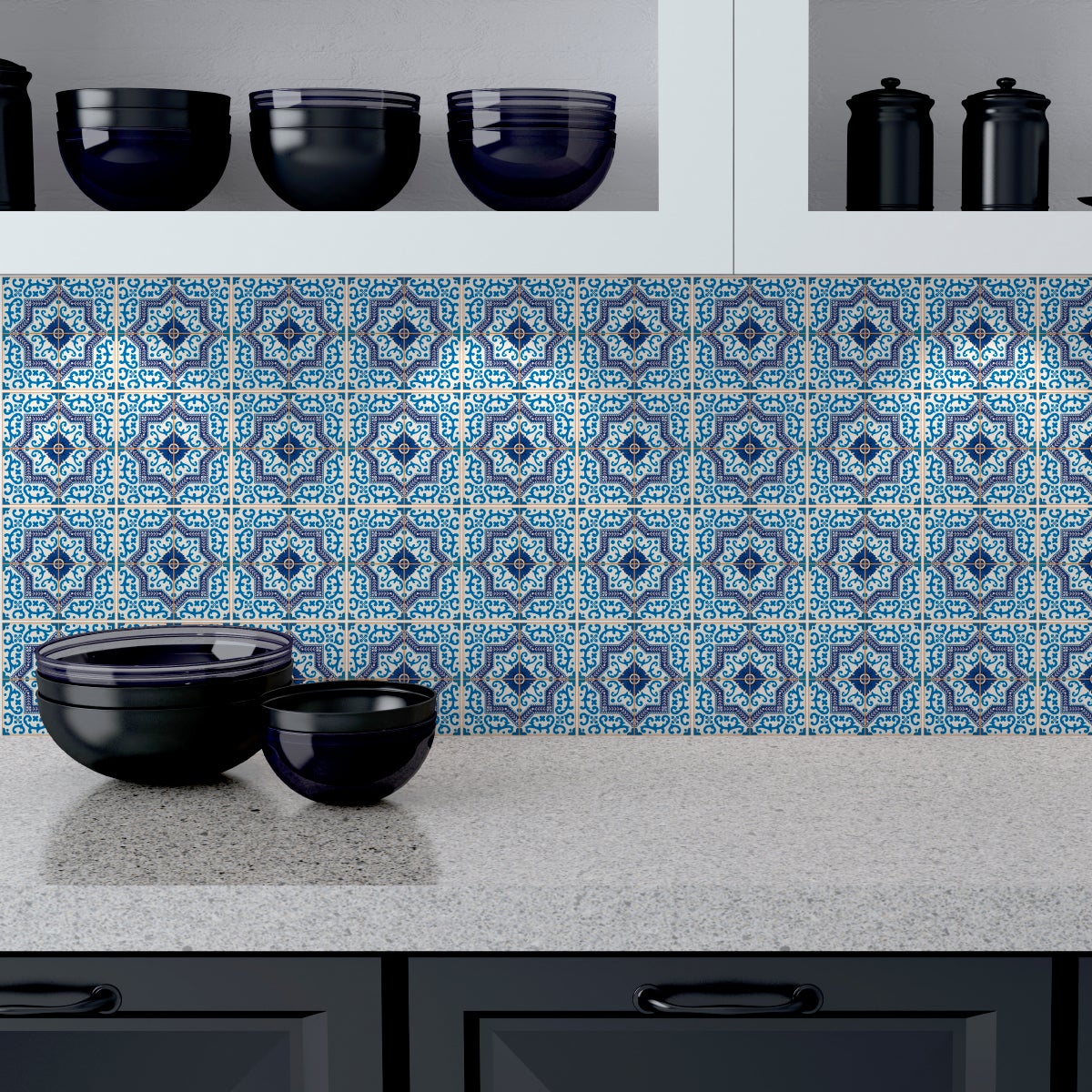 Area coperta per 1 quantità: 0.24 metro quadrato. Adesivi imitazione piastrelle per decorazione della casa ! Con adesivi piastrelle piastrelle di cemento e questo 24 adesivi piastrelle di cemento azulejos Henrique arredare la vostra casa è molto facile! Dimensioni di adesivi per piastrelle: Per i 40 x 60 cm, le adesivi piastrelle sono 10 x 10 cm Per i 60 x 90 cm, le adesivi piastrelle sono 15 x 15 cm Per i 80 x 120 cm, le adesivi piastrelle sono 20 x 20 cm Dove questi stickers murali incollare? Questi stickers murali piastrelle di cemento sono ideali per decorare le pareti della cucina e bagno.