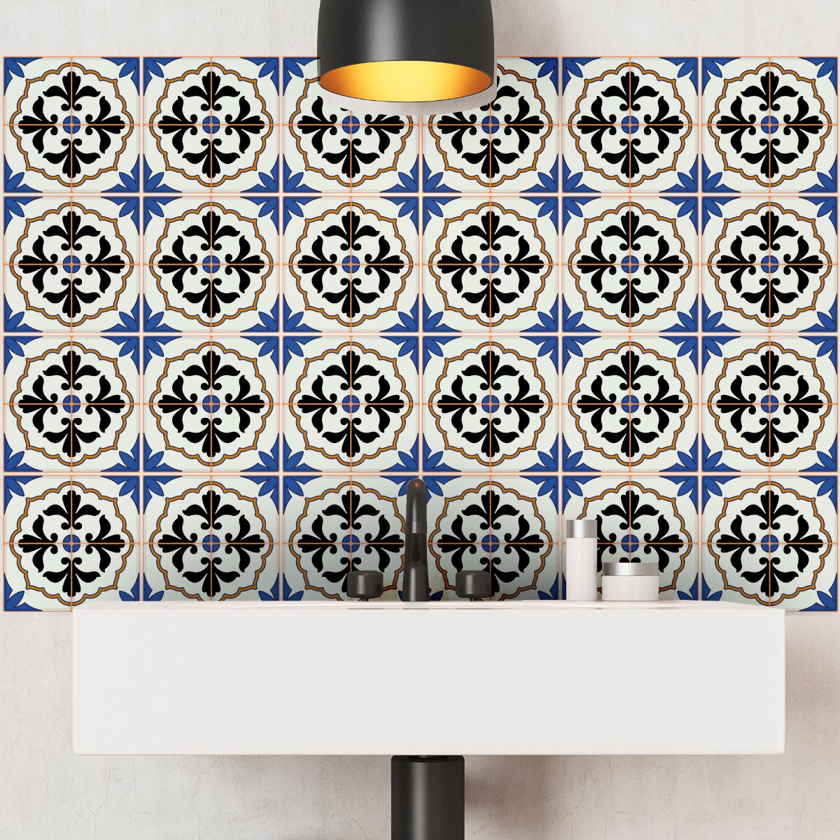 Area coperta per 1 quantità: 0.24 metro quadrato. Adesivi imitazione piastrelle per decorazione della casa ! Con adesivi piastrelle piastrelle di cemento e questo 24 adesivi piastrelle di cemento azulejos Italo arredare la vostra casa è molto facile! Dimensioni di adesivi per piastrelle: Per i 40 x 60 cm, le adesivi piastrelle sono 10 x 10 cm Per i 60 x 90 cm, le adesivi piastrelle sono 15 x 15 cm Per i 80 x 120 cm, le adesivi piastrelle sono 20 x 20 cm Dove questi stickers murali incollare? Questi stickers murali piastrelle di cemento sono ideali per decorare le pareti della cucina e bagno.