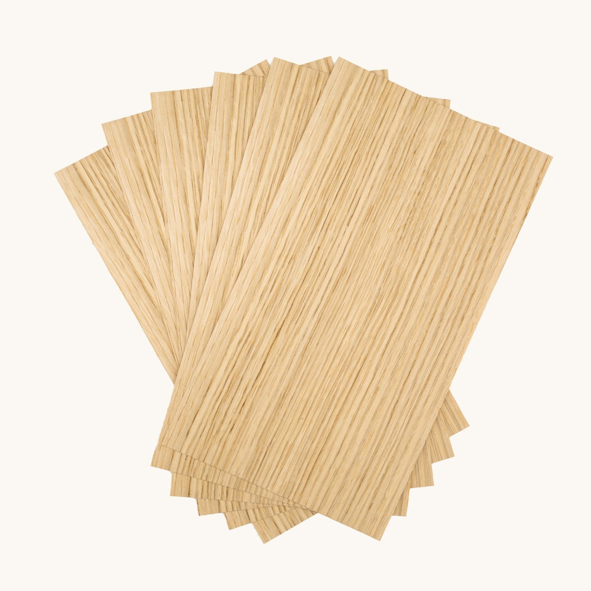 Caratteristiche principali • Materiale: 100% legno naturale di Rovere Euorpeo • Essenza: Oak (Quercus petraea) • Provenienza: Europa centrale e occidentale • Dimensioni: 28 cm x (dai 14 ai 20 cm) • Spessore: da 0,5 a 0,6 mm
