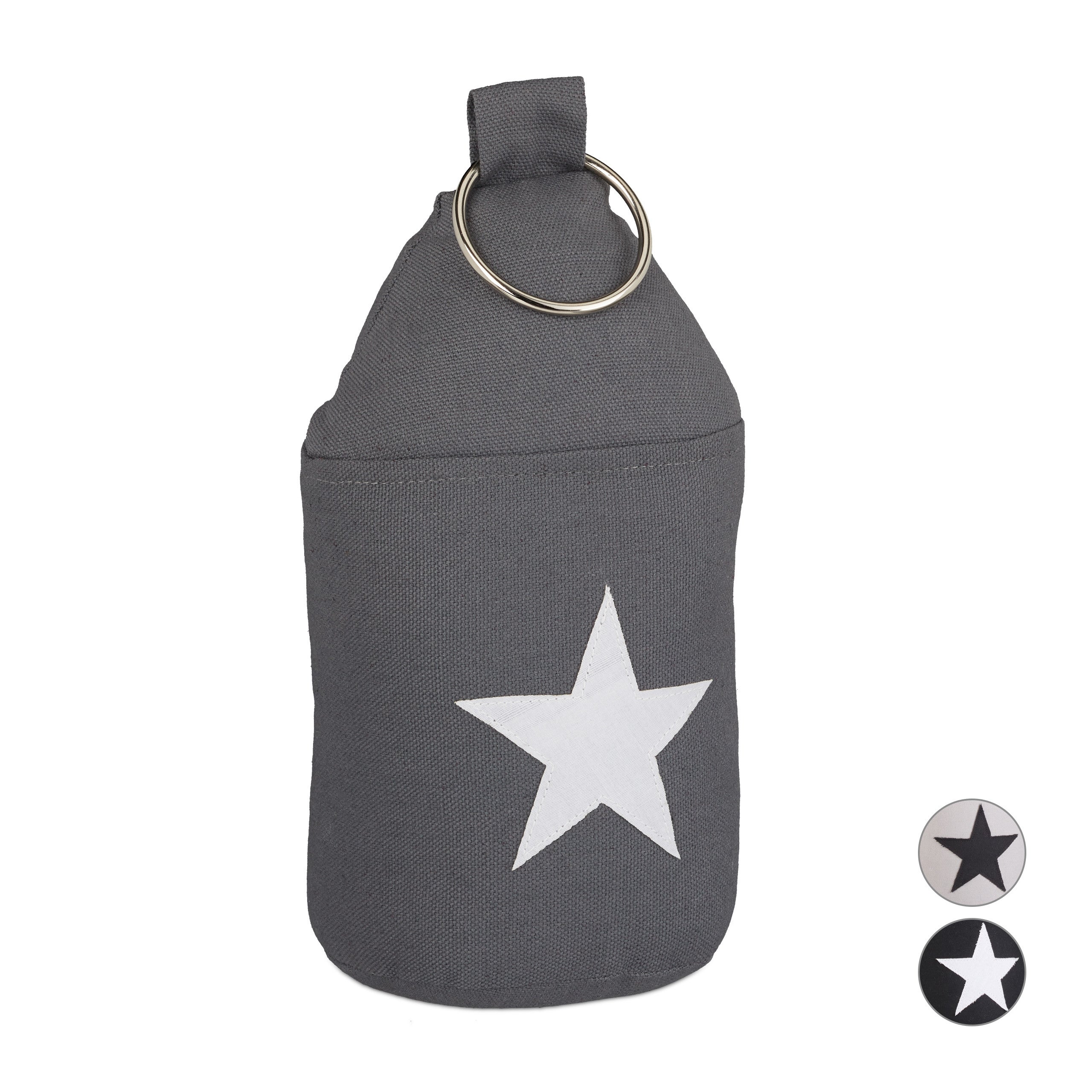 Il ferma porte tondo di stoffa vi convincerà grazie al suo look moderno con una graziosa stella decorativa sul lato anteriore. Il peso fermaporta non deve essere fissato al pavimento o alla parete e grazie al pratico anello metallico può essere sollevato facilmente e posizionato dove meglio desiderate.