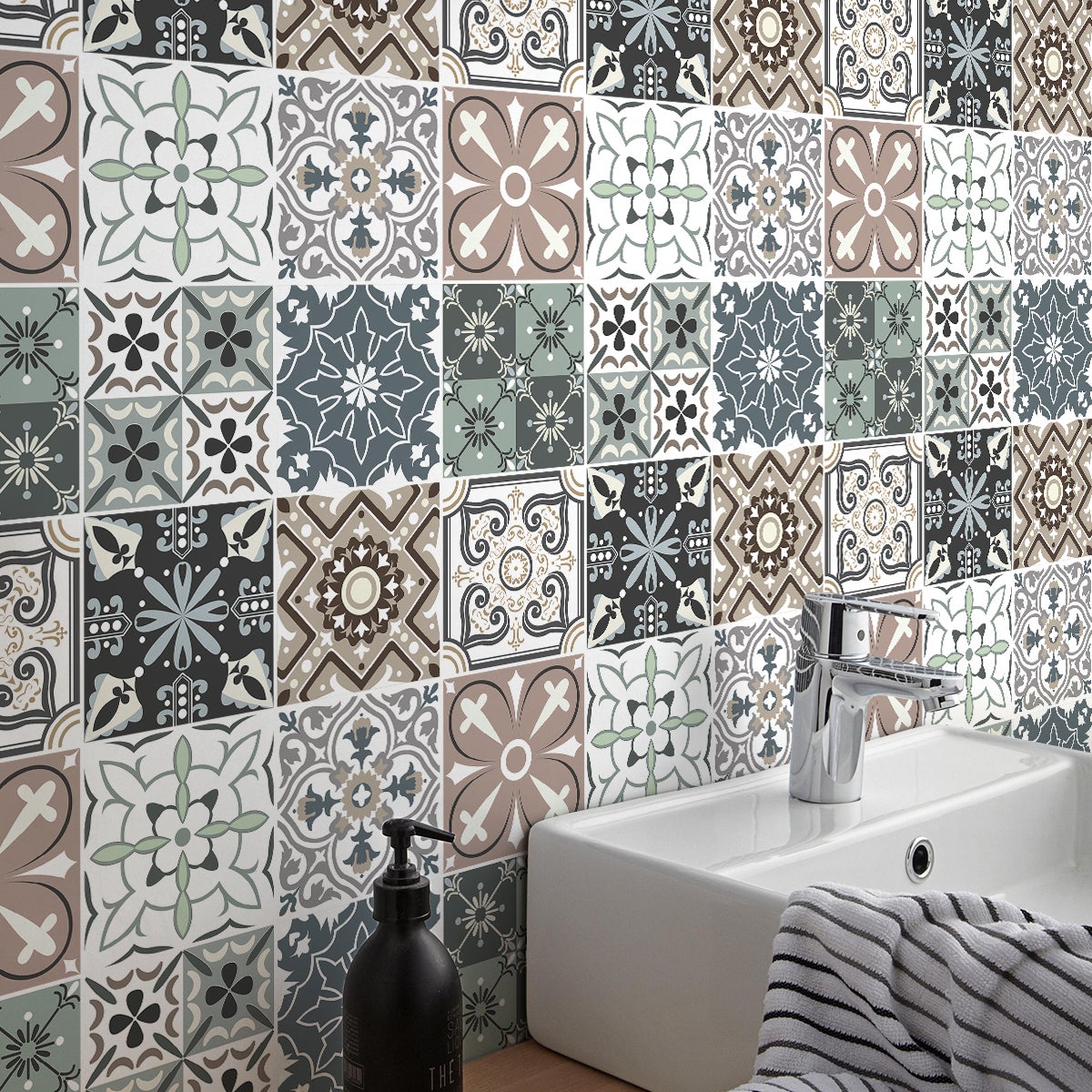 Area coperta per 1 quantità: 0.09 metro quadrato. Adesivi imitazione piastrelle per decorazione della casa ! Con adesivi piastrelle di cemento e questo 9 adesivi piastrelle azulejos ariahna arredare la vostra casa è molto facile! Dimensioni di adesivi per piastrelle di cemento: Per i 30 x 30 cm, le adesivi piastrelle sono 10 x 10 cm Per i 45 x 45 cm, le adesivi piastrelle sono 15 x 15 cm Per i 60 x 60 cm, le adesivi piastrelle sono 20 x 20 cm Dove questi stickers murali incollare? Questi stickers murali piastrelle di cemento sono ideali per decorare le pareti della cucina e bagno.