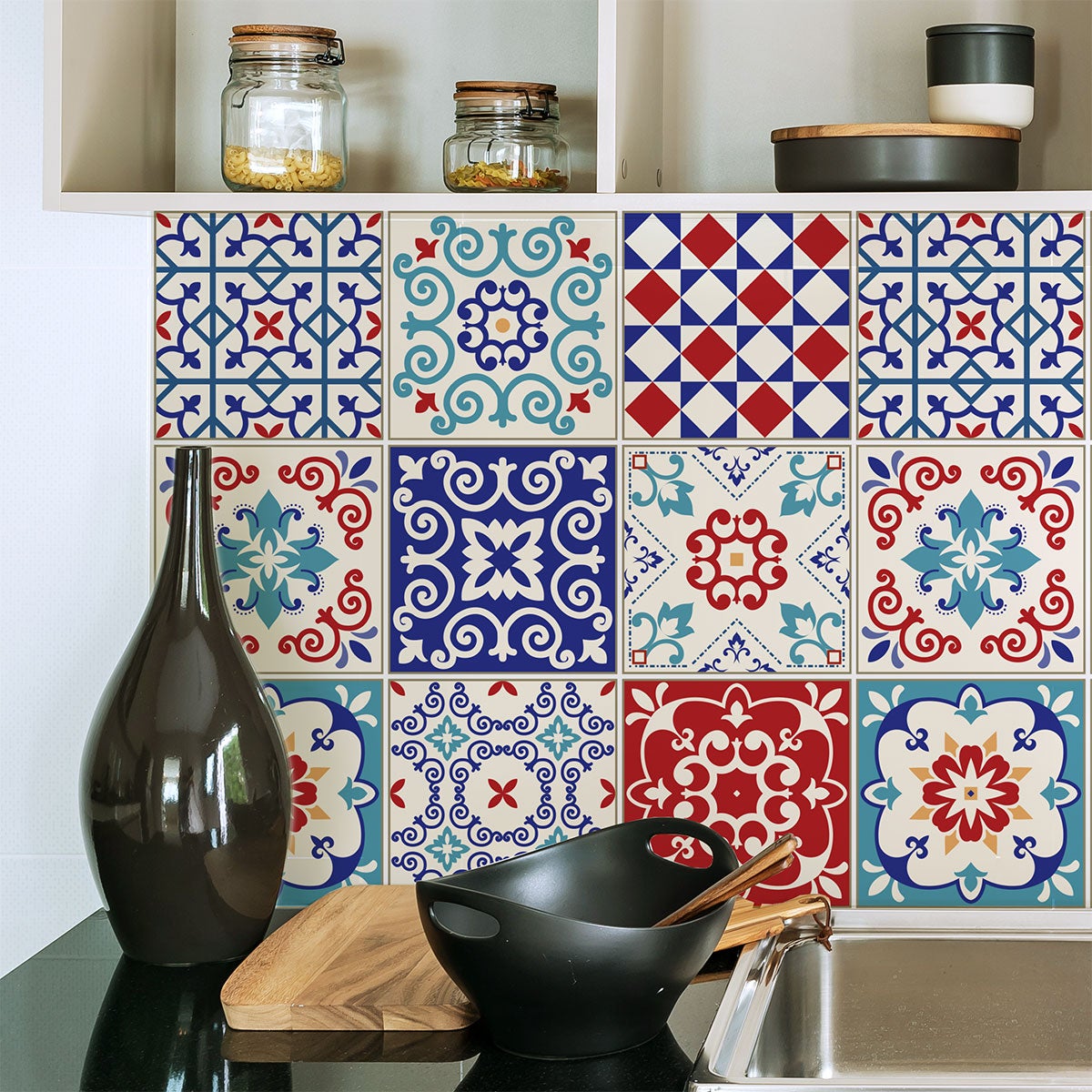 Area coperta per 1 quantità: 0.20 metro quadrato. Adesivi imitazione piastrelle per decorazione della casa ! Con adesivi piastrelle di cemento e questo 9 adesivi piastrelle di cemento azulejos giraono arredare la vostra casa è molto facile! Dimensioni di adesivi per piastrelle di cemento: Per i 30 x 30 cm, le adesivi piastrelle sono 10 x 10 cm Per i 45 x 45 cm, le adesivi piastrelle sono 15 x 15 cm Per i 60 x 60 cm, le adesivi piastrelle sono 20 x 20 cm Dove questi stickers murali incollare? Questi stickers murali piastrelle di cemento sono ideali per decorare le pareti della cucina e bagno.