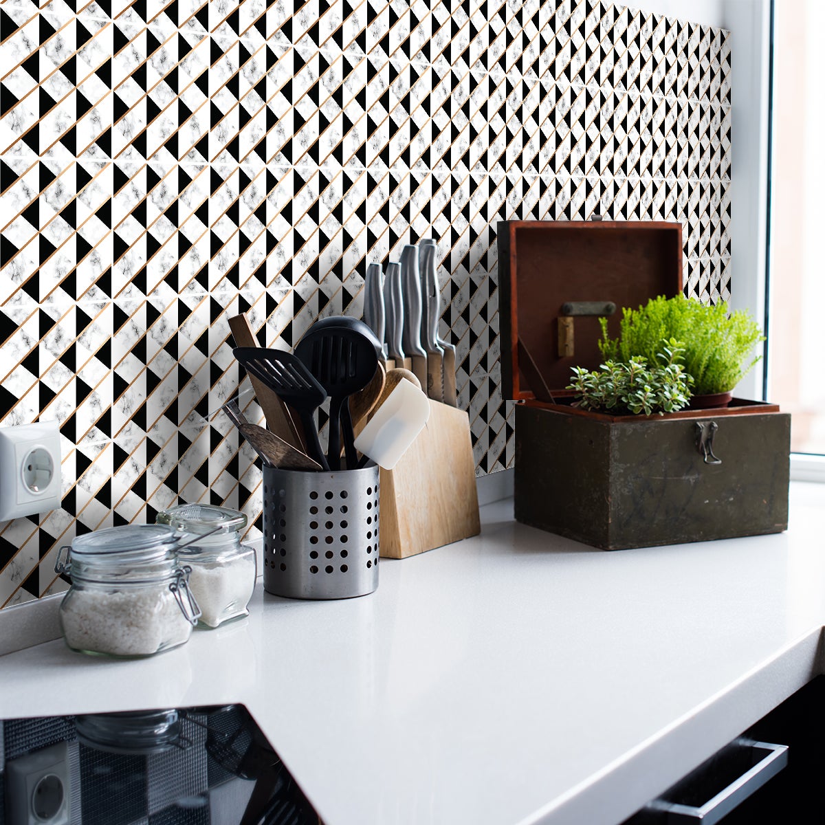 9 adesivi piastrelle effetto marmorizzato in oro bianco e nero - Sticker adesivo - adesivi murali - 9stickers20x20cm