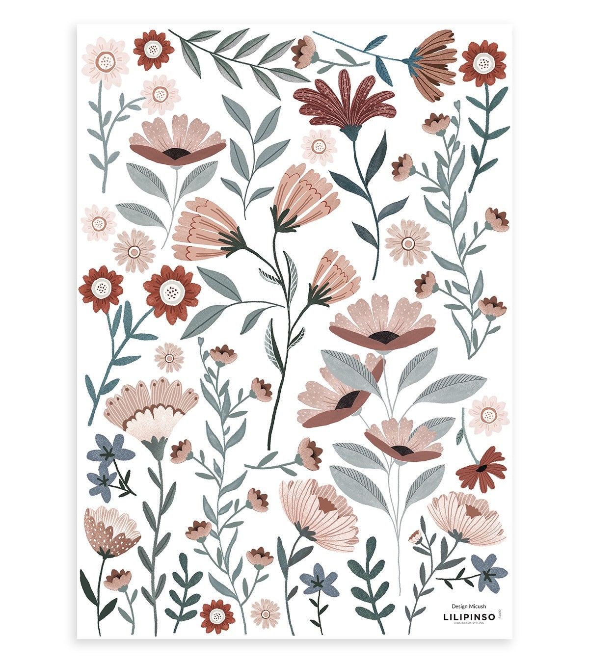 Adesivi murali con fiori dell'oceano 29,7x42 cm, Lilipinso
