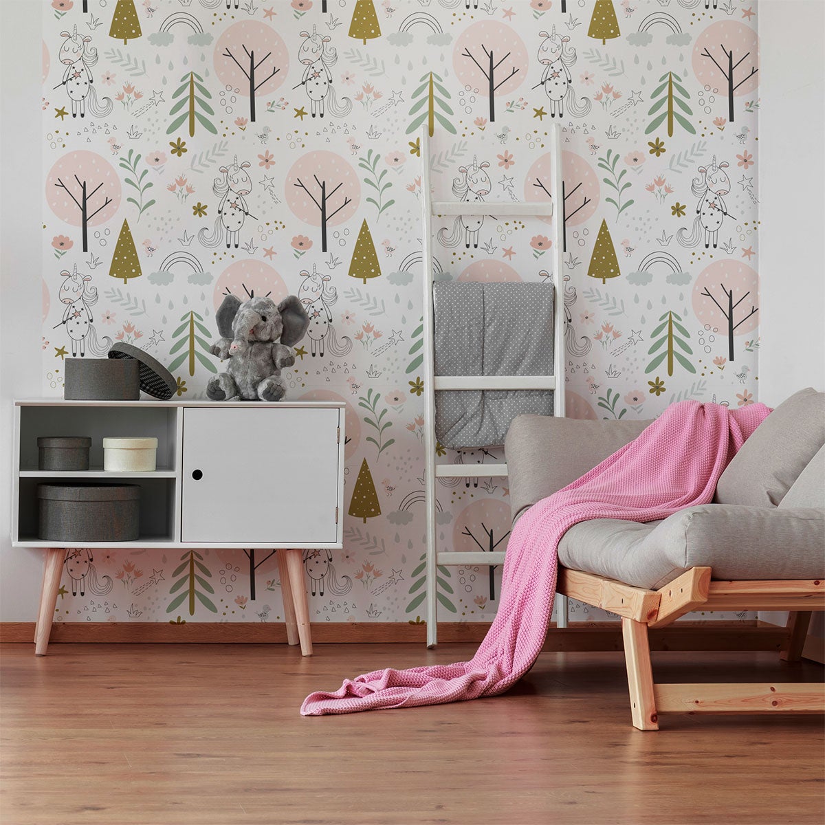 Adesivo arazzo stanza dei bambini gli unicorni dei boschi - Sticker adesivo - adesivi murali - 40x40cm