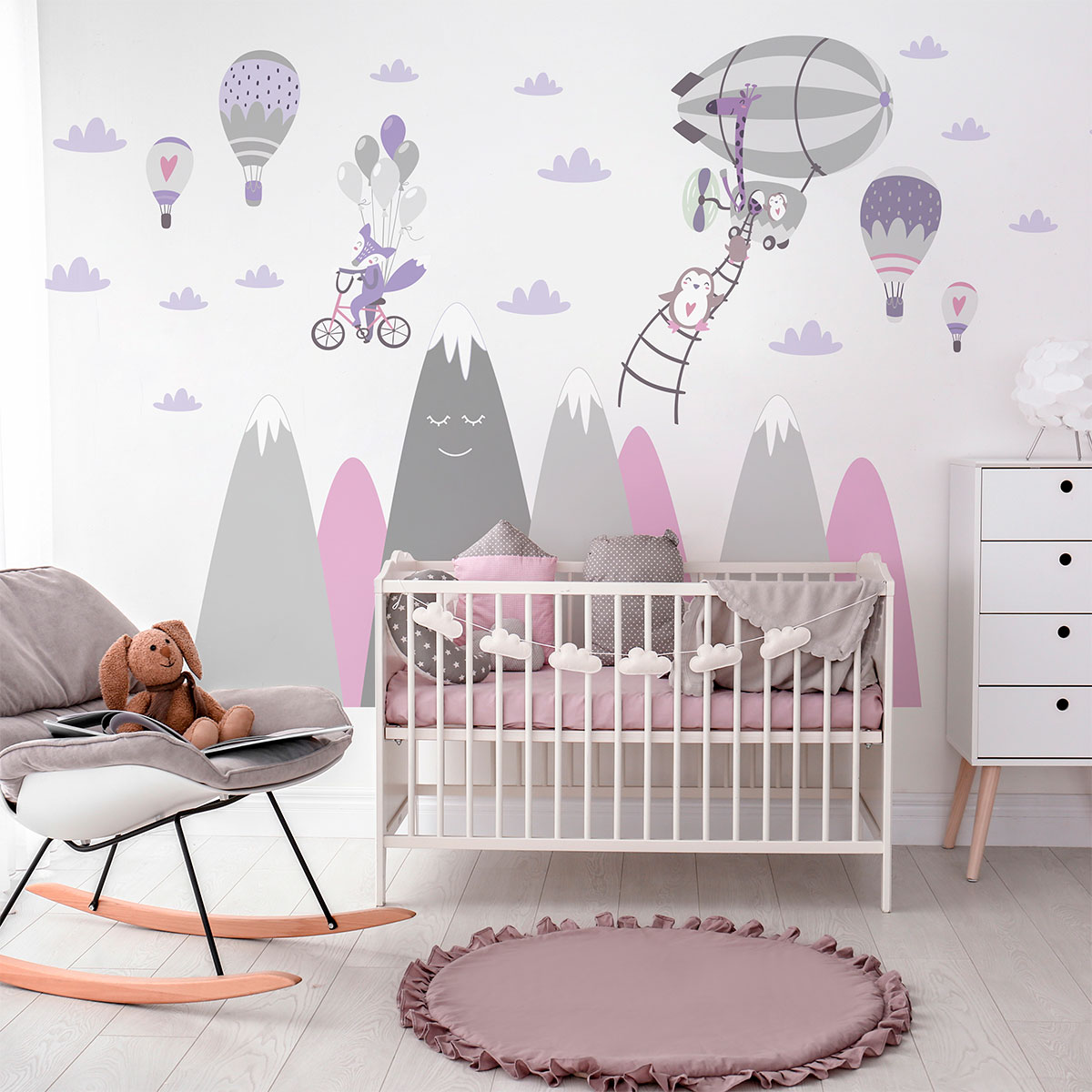 Adesivo bambino di montagna scandinavo animali erranti - Sticker adesivo - adesivi murali - 60x90cm