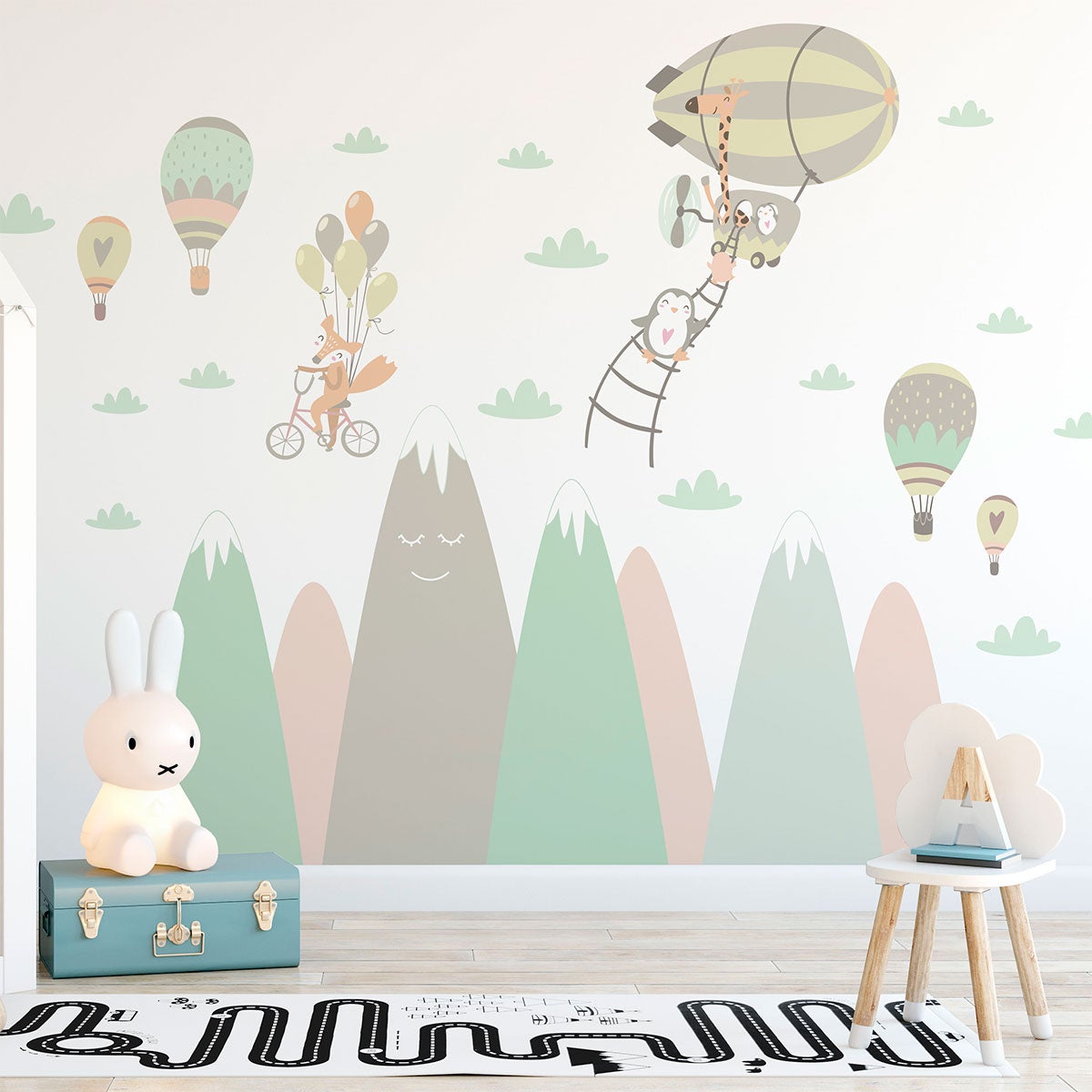 Adesivo bambino di montagna scandinavo giocatori di animali - Sticker adesivo - adesivi murali - 80x120cm