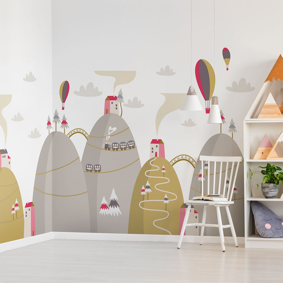 Adesivo di montagna scandinavo mongolfiere in spettacolo - Sticker adesivo - adesivi murali - 100x150cm