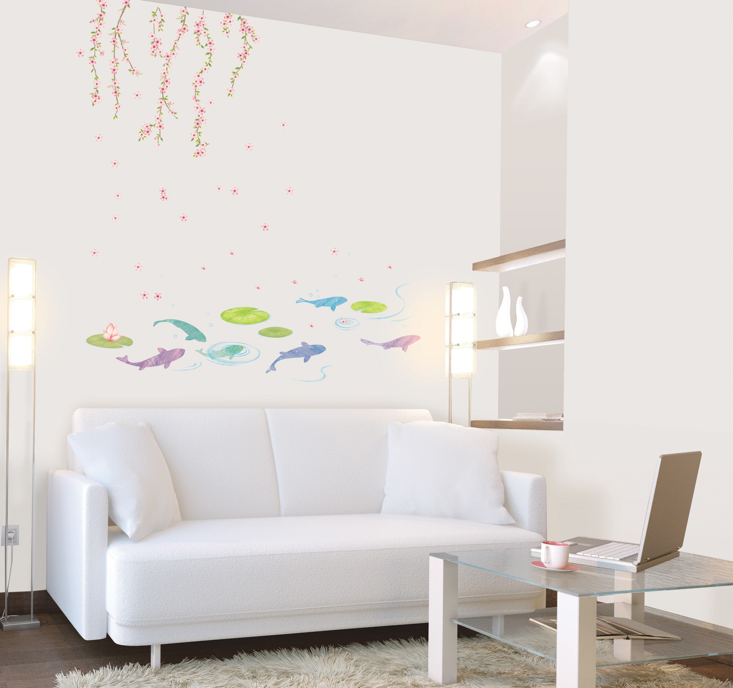 Adesivo Lago di fiori e pesci - Sticker adesivo - adesivi murali -