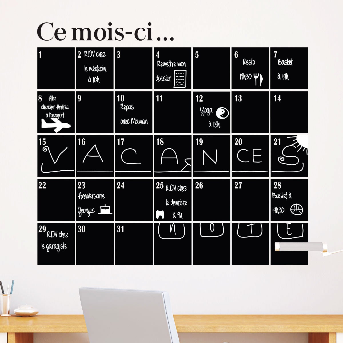 Adesivo lavagna calendario mensile - Sticker adesivo - adesivi murali - 75x85cm