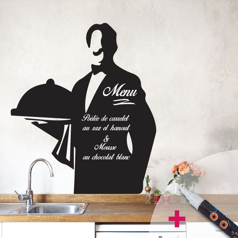 Adesivo lavagna cameriere + bianco gesso liquido - Sticker adesivo - adesivi murali - 90x75cm