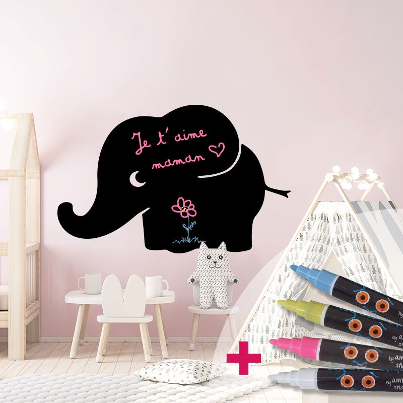 Adesivo lavagna elefantino + 4 gessi liquidi - Sticker adesivo - adesivi murali - 105x165cm