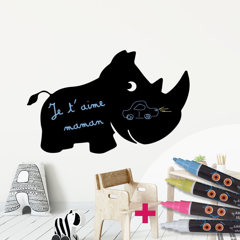 Adesivo lavagna rinoceronte + 4 gessi liquidi - Sticker adesivo - adesivi murali - 95x150cm