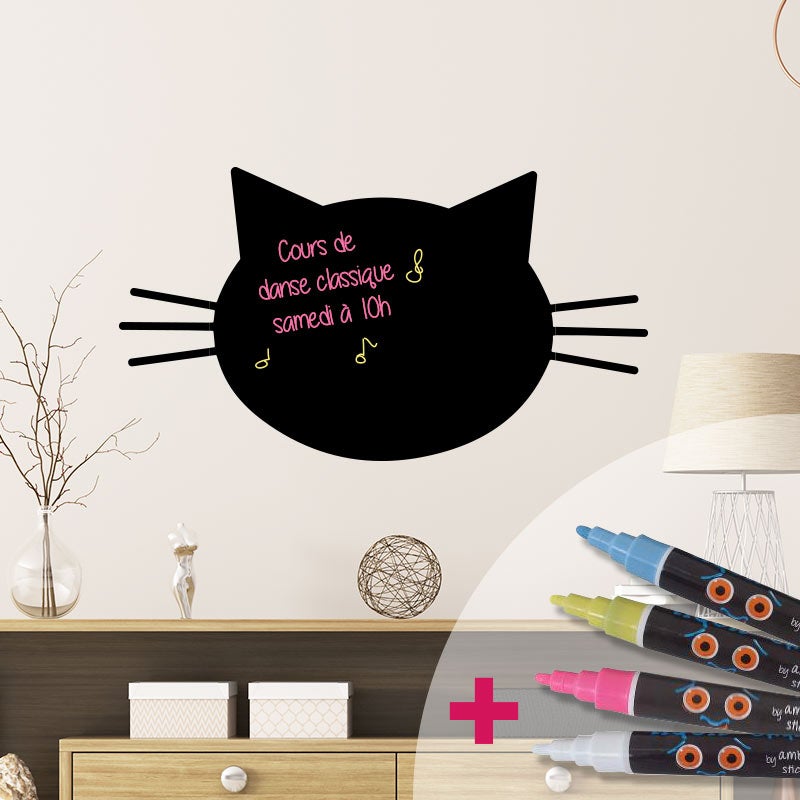Adesivo lavagna testa di gatto + 4 gessi liquidi - Sticker adesivo - adesivi murali - 25x30cm