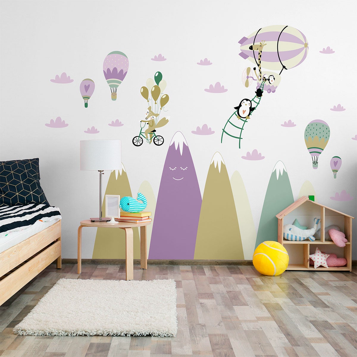 Adesivo montagne scandinave animali e amici divertenti - Sticker adesivo - adesivi murali - 70x105cm