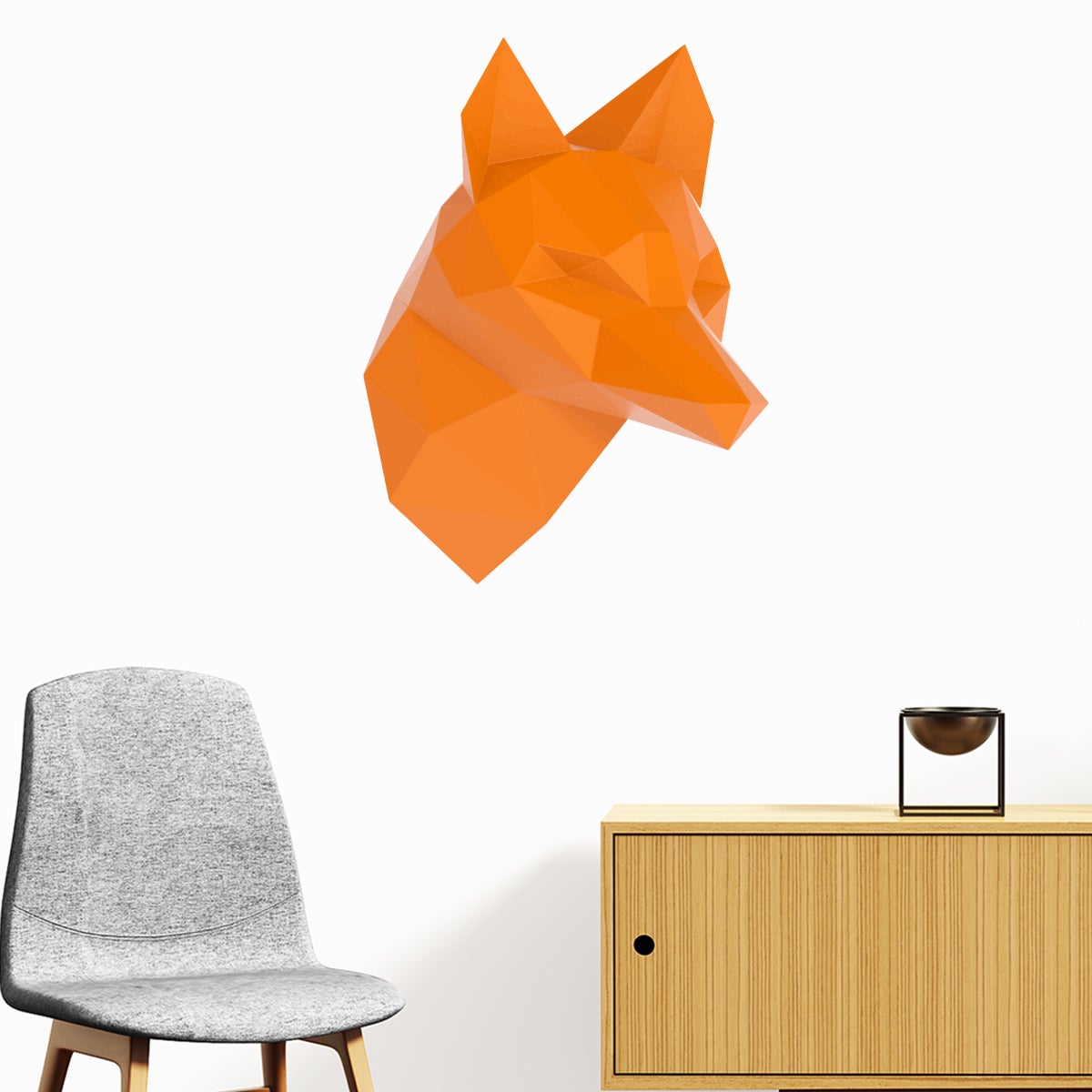 Adesivo origami 3D profilo arancione volpe - Sticker adesivo - adesivi murali - 100x75cm