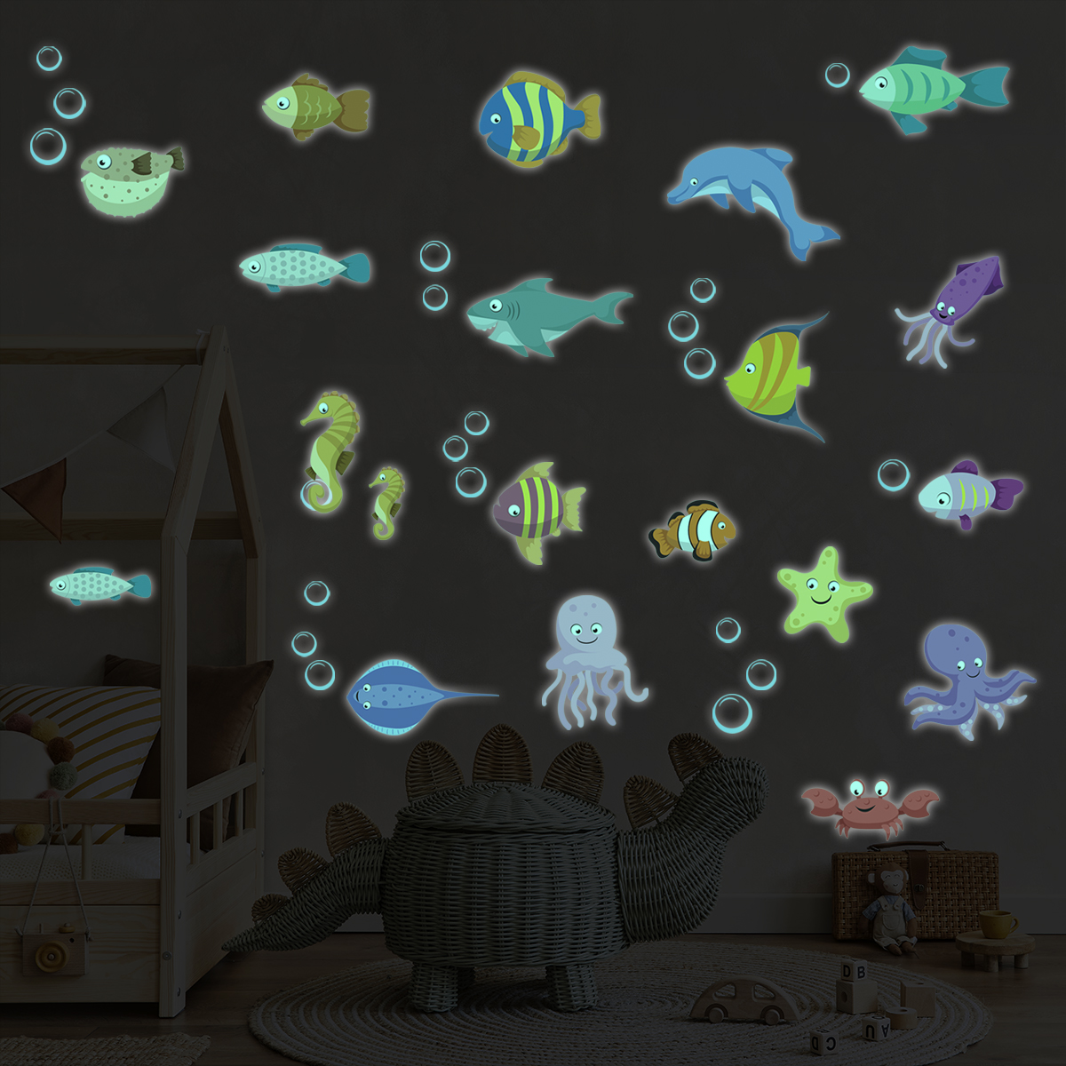Adesivos fosforescente animali marini - Sticker adesivo - adesivi murali - 30x40cm