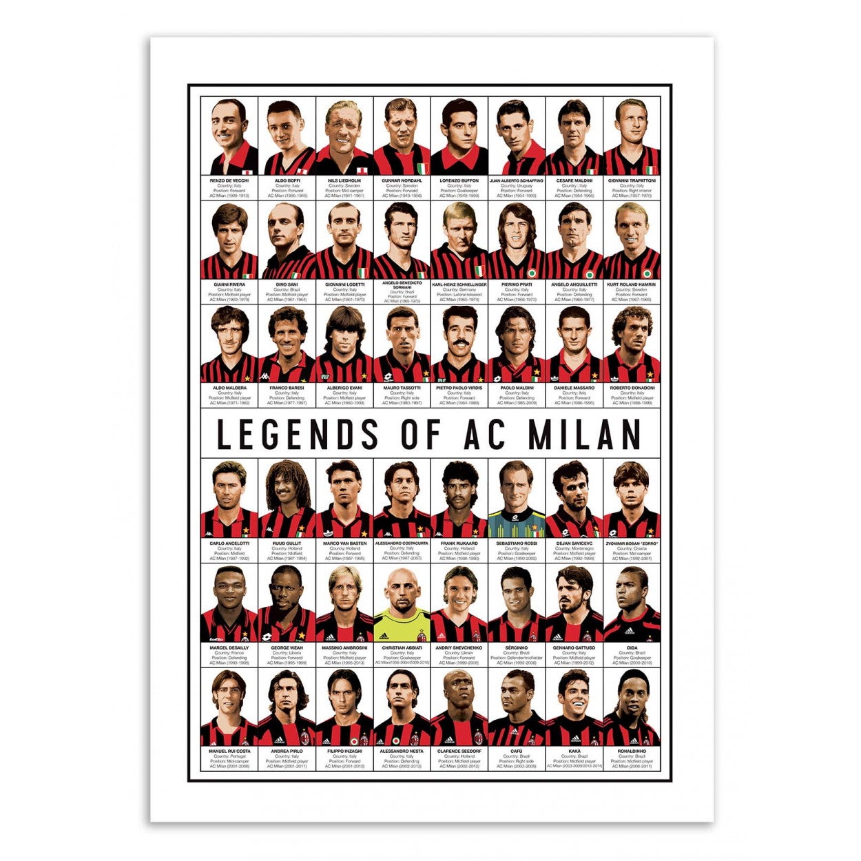 Affiche d’art 50 x 70 cm - Legends of AC Milan - Olivier Bourdereau