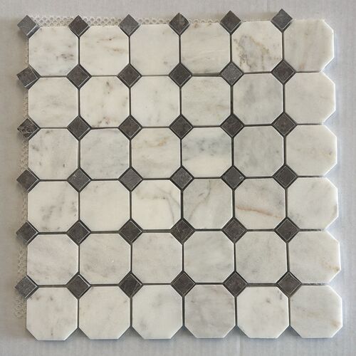 Albedo Pierre - Mosaico in Marmo Bianco Mugla e Marrone Marinaçe - Ottagono