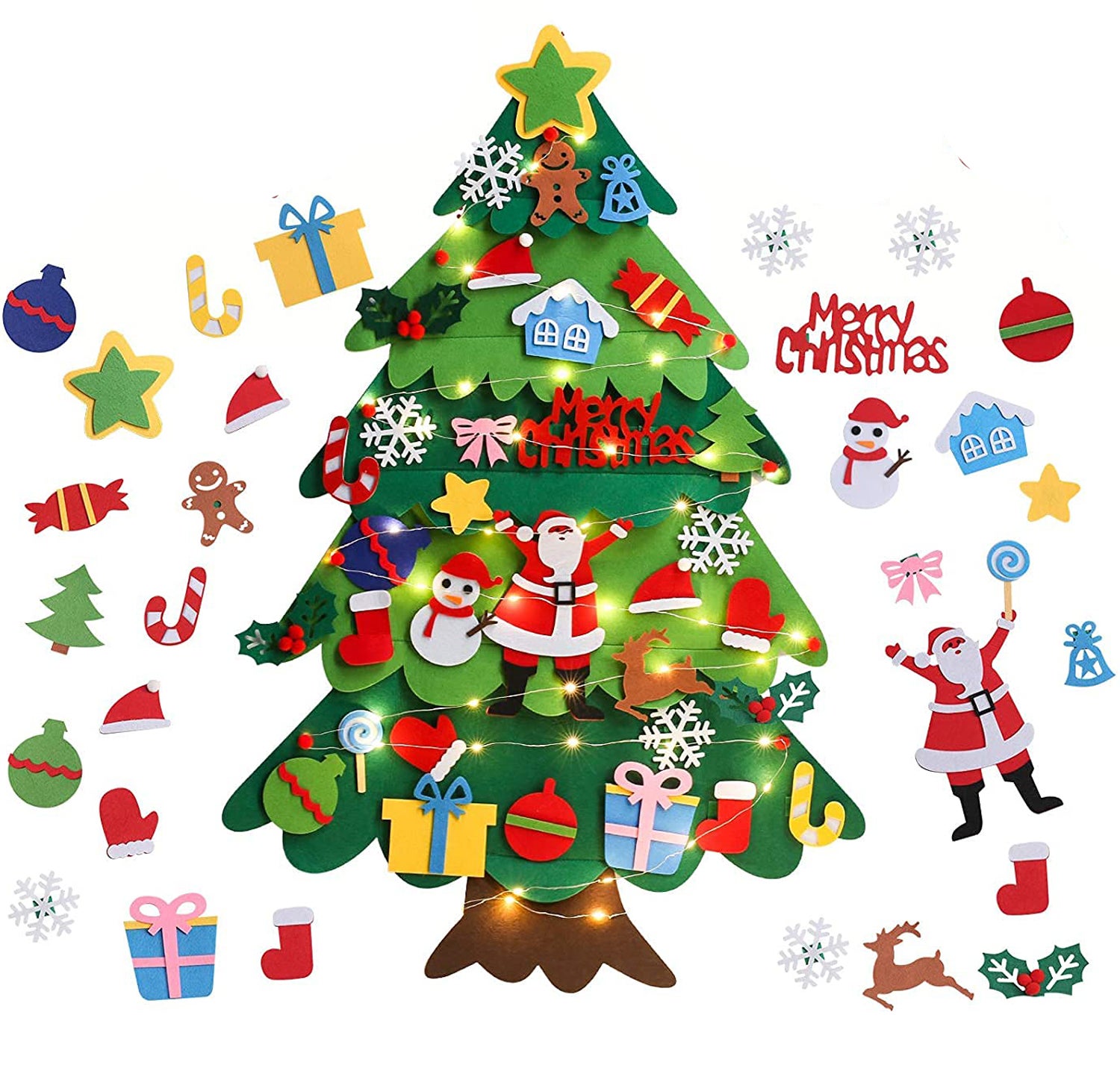 Albero di Natale con luci a LED, albero di Natale fai da te in feltro con 32 ornamenti rimovibili, decorazioni artigianali natalizie, 100 cm