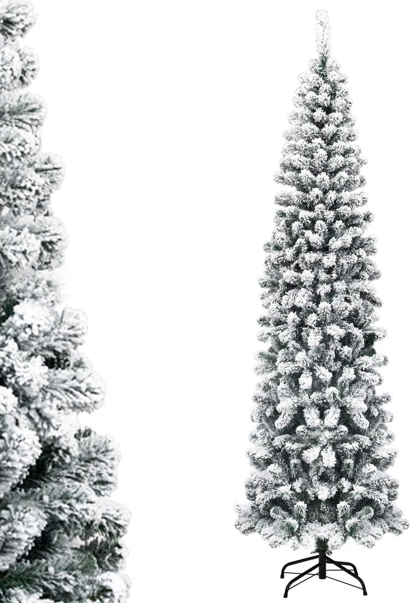 Albero di Natale Innevato 140/180/225 cm, Albero di Natale Artificiale Slim con 242/500/641 Rami Realistici e Folti e Base Pieghevole di Metal