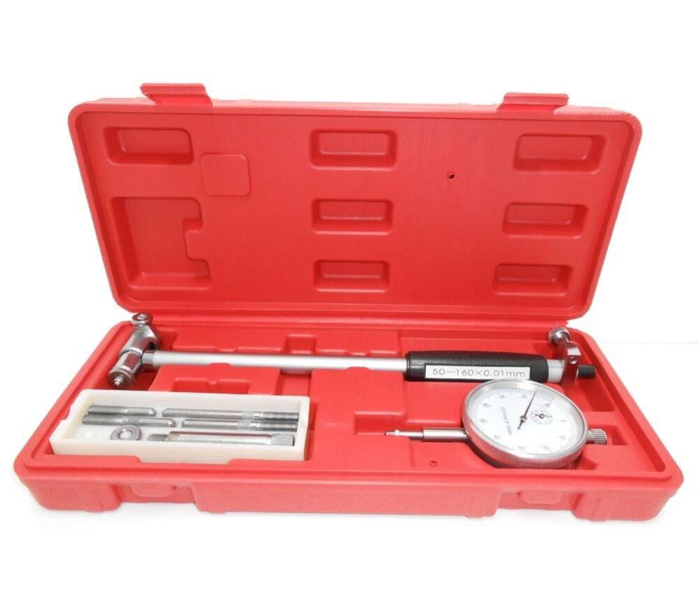 ALESAMETRO CON COMPARATORE CENTESIMALE 50-160MM AlesAmetro è uno strumento di misurazione, nell'ambito della meccanica con il principale scopo di, rilevare con precisione il diametro interno dei fori circolari come ad esempio: nella misurazione di cilindri nei motori endotermici (alesaggio). Nello specifico quest'alesametro con comparatore centesimale, ha un range di misurazione da: 50-160 mm con sensibilità 0.01mm. Caratteristiche tecniche: Materiale: lega metallica Range di misurazione: 50-160mm con sensibilità 0.01mm La confezione contiene: Il misuratore è contenuto in un comodo astuccio in plastica. N. 1 Alesametro completo di accessori in comoda valigetta di plastica
