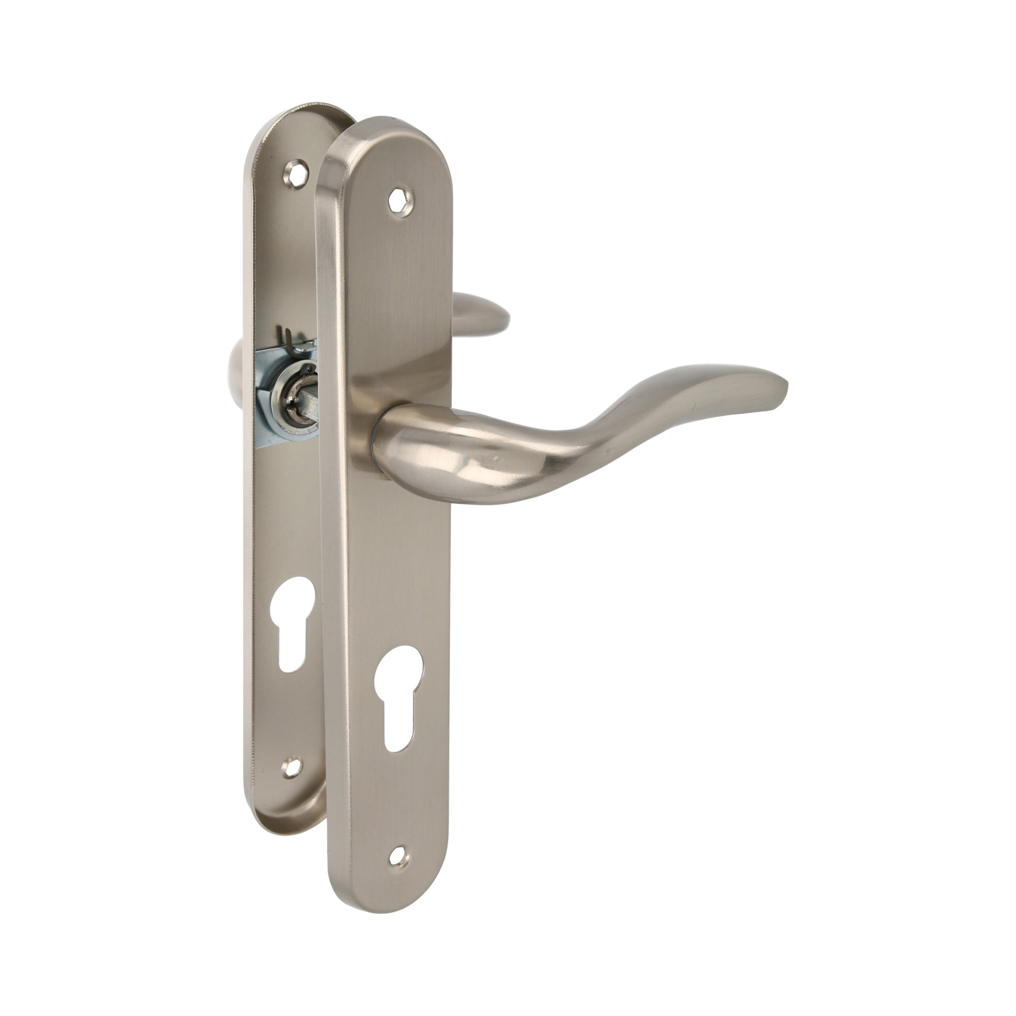 Amig - Set Maniglia per Porta - Modello Lena - Acciaio - 238 x 40 mm - Serratura di 85 mm - Colore: Cromato opaco