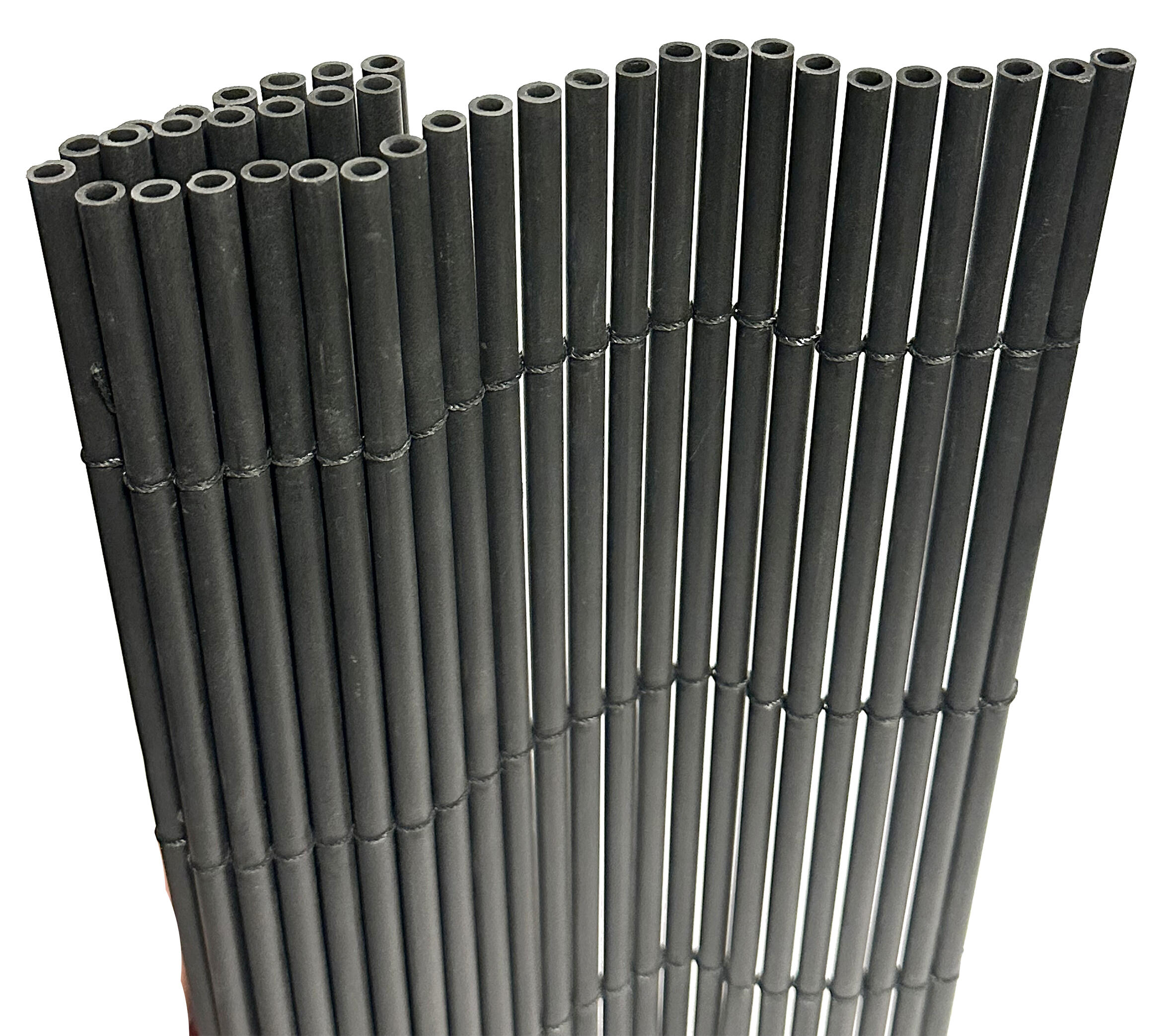 Arella in plastica colore antracite con cannette rotonde legate con filo di nylon, stabilizzata raggi uv, misura 100x300 cm