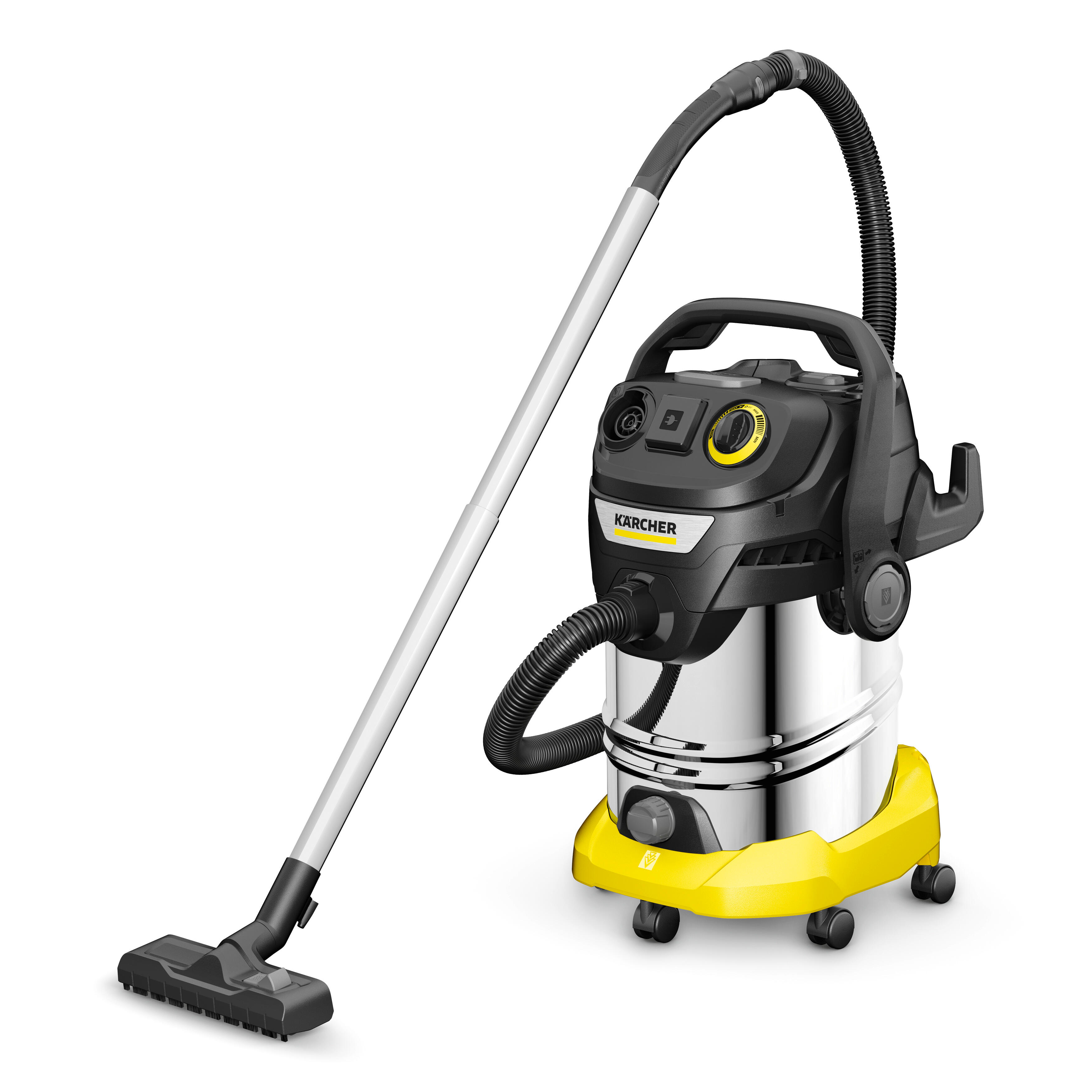 Risultati di pulizia ed efficienza energetica con il nuovo KWD 6. Dotato di bidone da 30l in acciaio inox, cavo di alimentazione da 8m, tubo di aspirazione da 2,2m e presa elettroutensile.