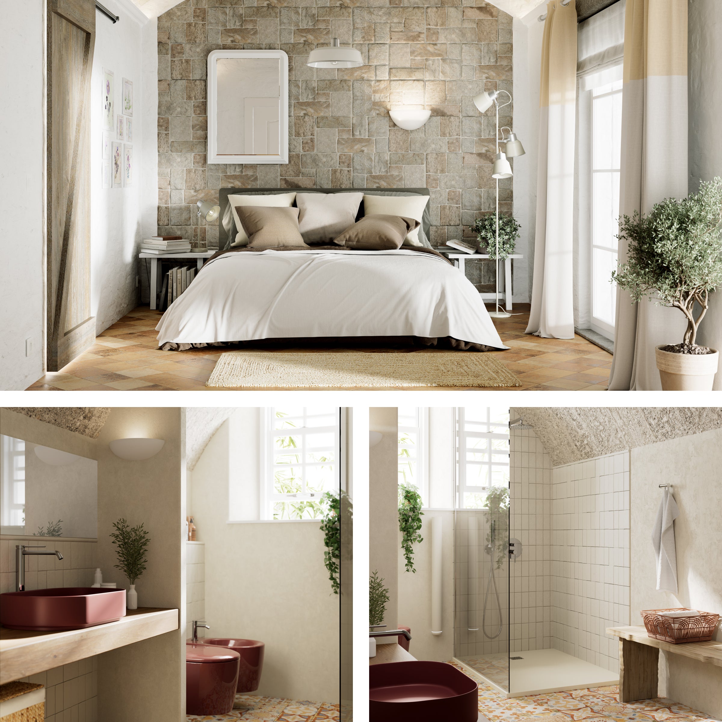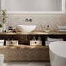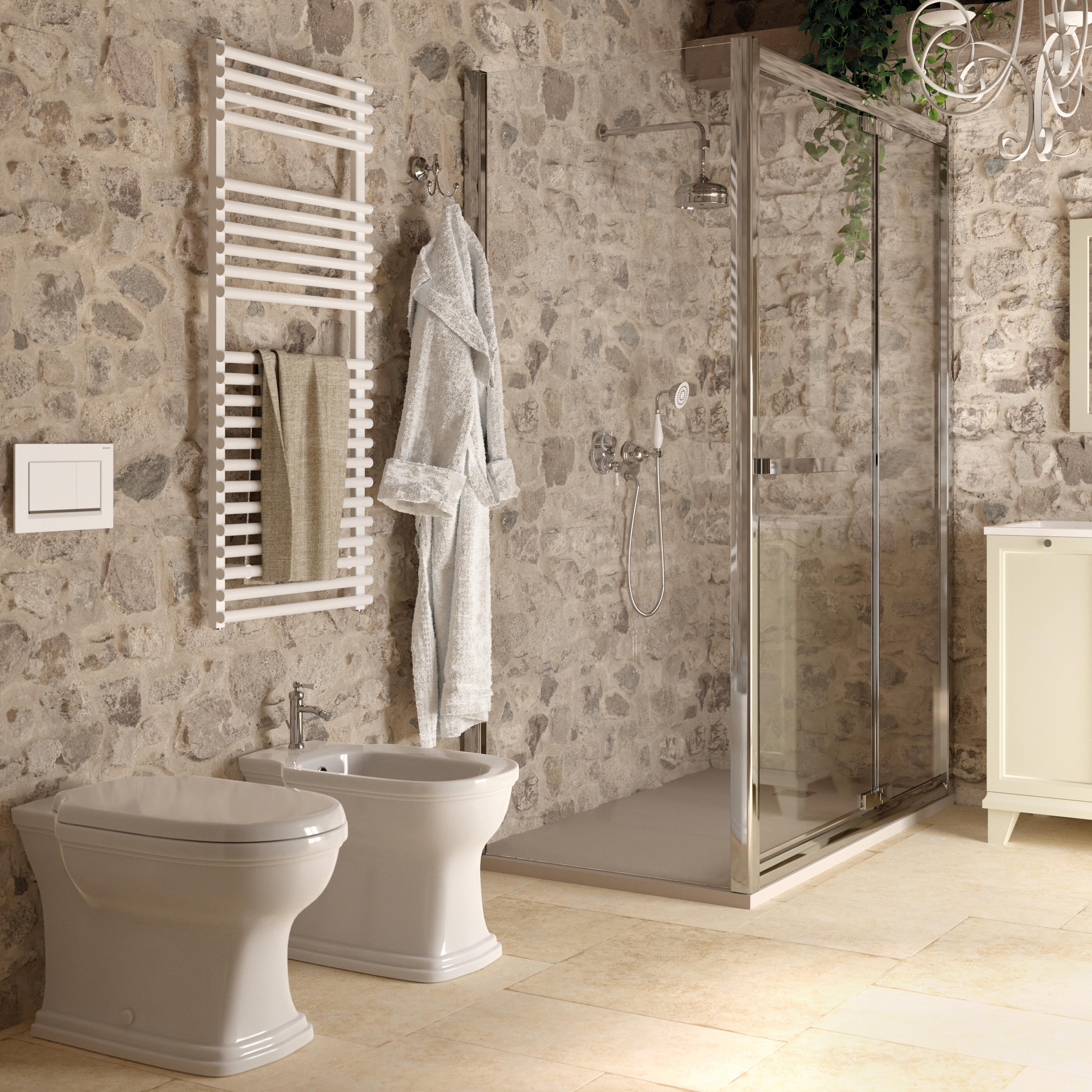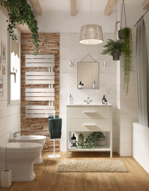 Arredare un bagno in stile Country significa creare un ambiente dal fascino rustico dove rilassarsi diventa un piacere. Il legno, bianco o nel suo colore naturale, riscalda l’atmosfera, mentre lo specchio in ferro battuto dona un tocco di romanticismo alla stanza. L’effetto campestre è dato dal rivestimento in vero legno, che con la sua texture grezza richiama l’essenza più pura del materiale naturale. I sanitari hanno una forma classica e arrotondata, i miscelatori ricordano le vecchie case d’epoca. La vasca da bagno completa l’arredamento in chiave retrò.
