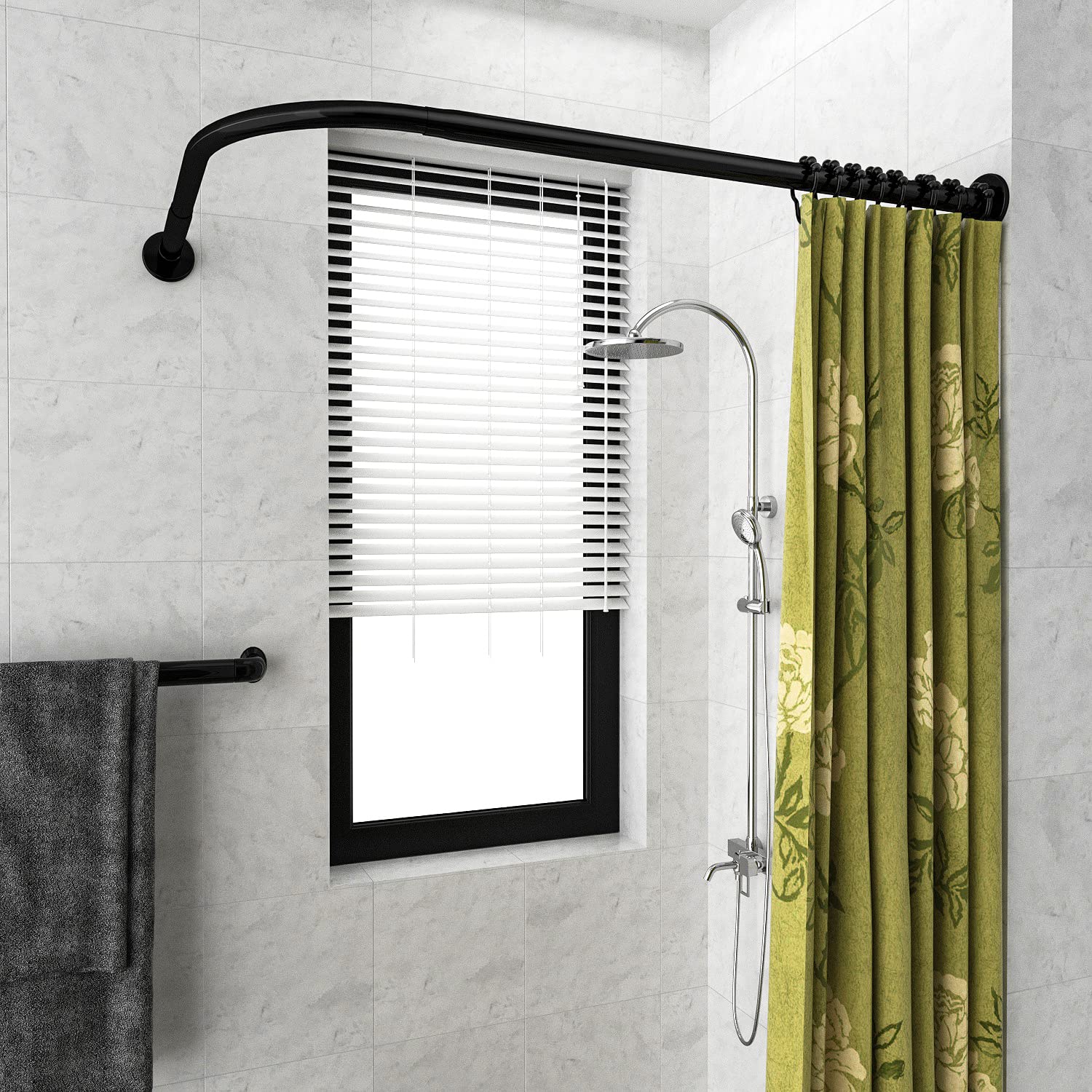 Bastone per tenda da doccia angolare regolabile, per vasca da bagno, 68-98 x 192-222 cm, da forare (nero)