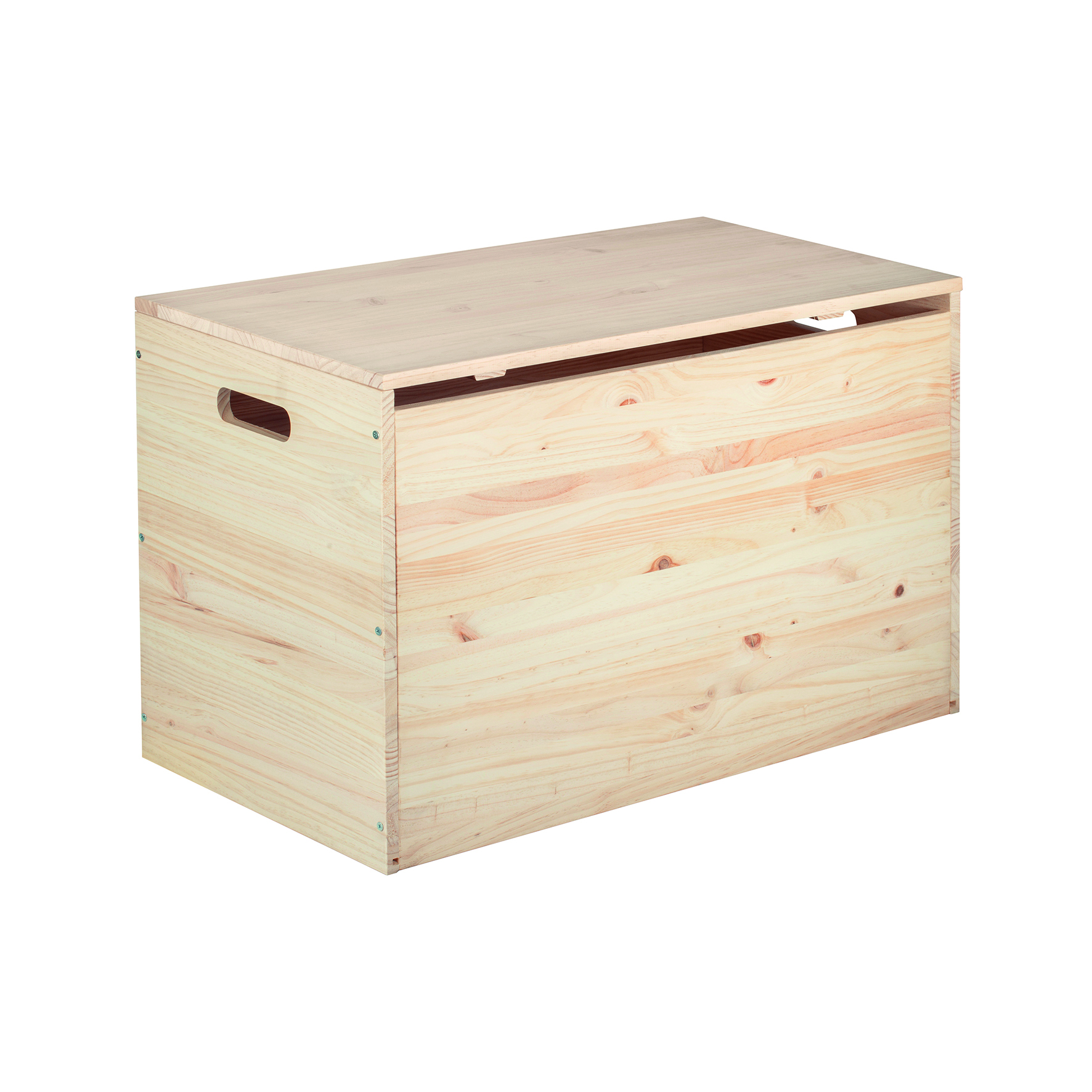 Baule in legno di pino naturale non verniciato, con una capacità di 135 litri e un coperchio. Perfetto per organizzare tutti i tipi di prodotti all'interno della casa, come vestiti, cibo o giocattoli. Ha un certificato PEFC che garantisce che il legno utilizzato proviene da foreste gestite in modo sostenibile e nel rispetto dell'ambiente. Misure: 80 x 50 x 40 cm (larghezza x altezza x profondità).