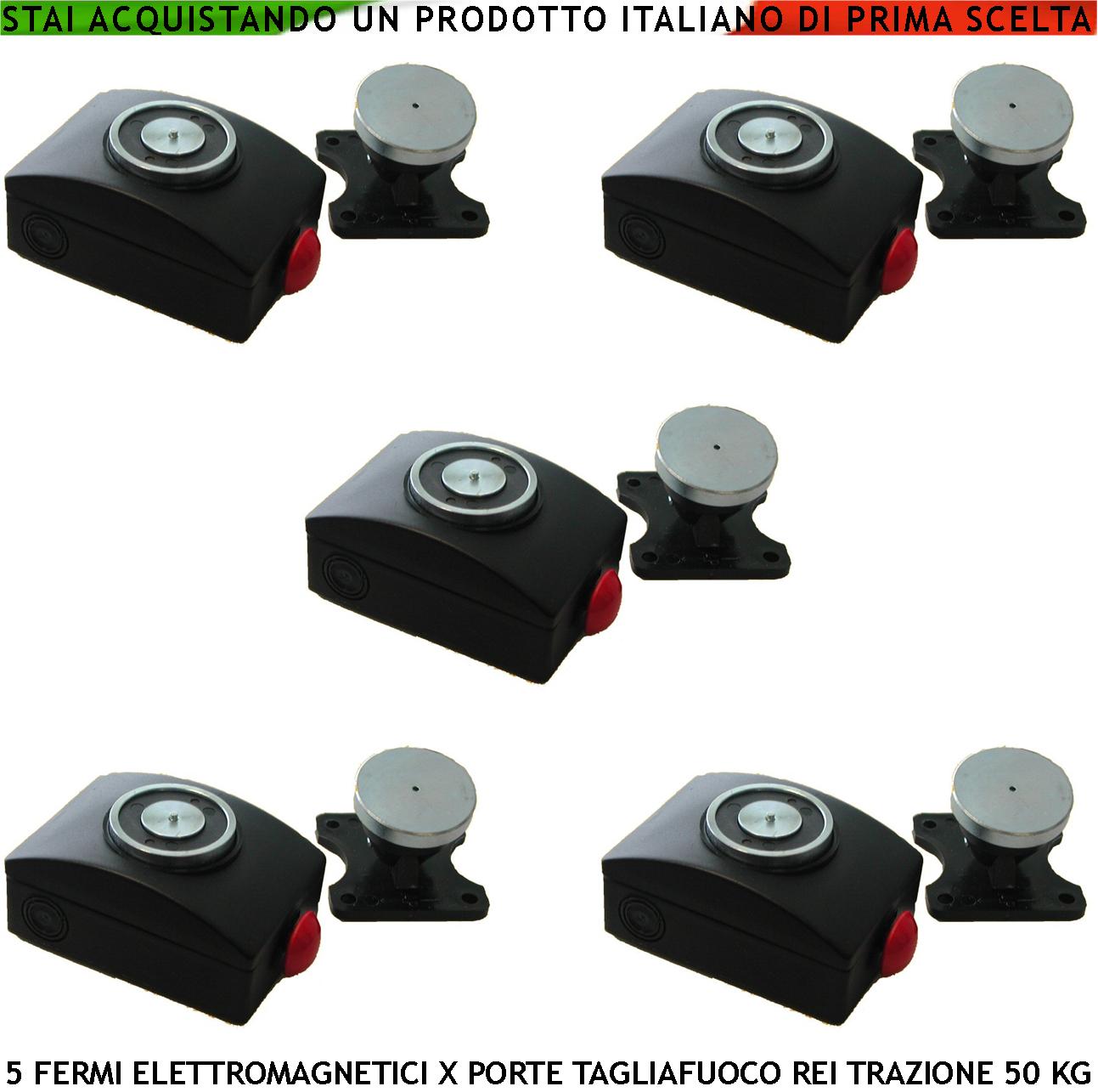 BLOCCAPORTA MAGNETETICO NERO 5 PEZZI PORTE TAGLIAFUOCO REI FORZA DI TRAZIONE 50 KG ANTINCENDIO ALIMENTAZIONE 22/28 VCC