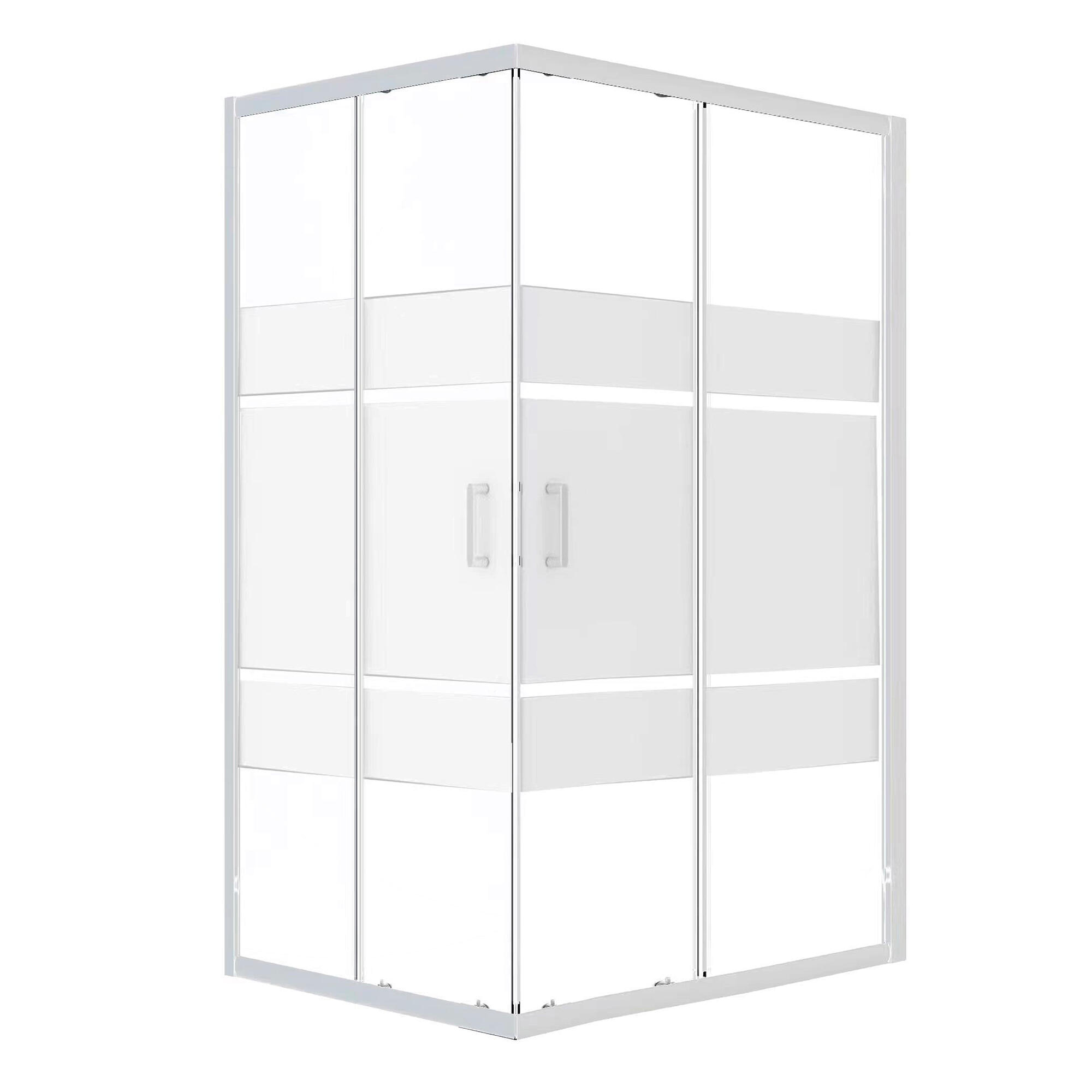 Box doccia rettangolare serie Alba, in alluminio, finitura cromata, vetro serigrafato spessore 6 mm, porta scorrevole ad angolo, altezza 190 cm, maniglia in metallo inclusa, dimensioni 88-100 x 68-80 cm