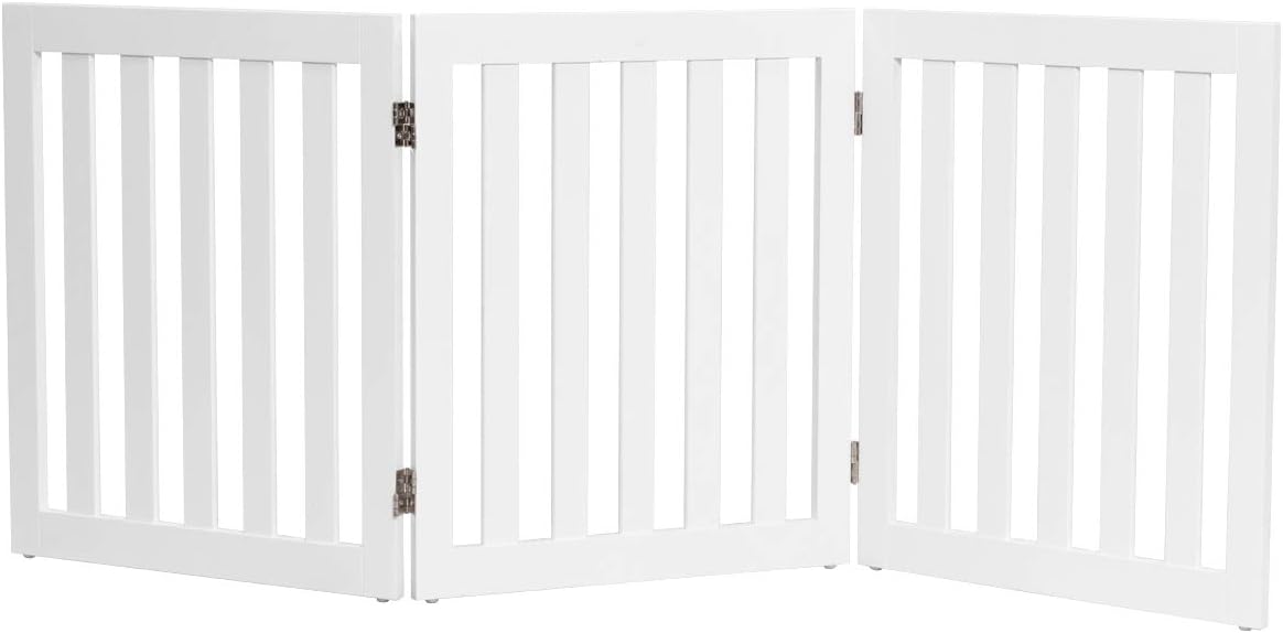 Cancelletto per Cani Pieghevole a 3 Pannelli, con 2 Piedi, in Legno, Ideale per Cani di Piccola/Media Taglia, Bianco