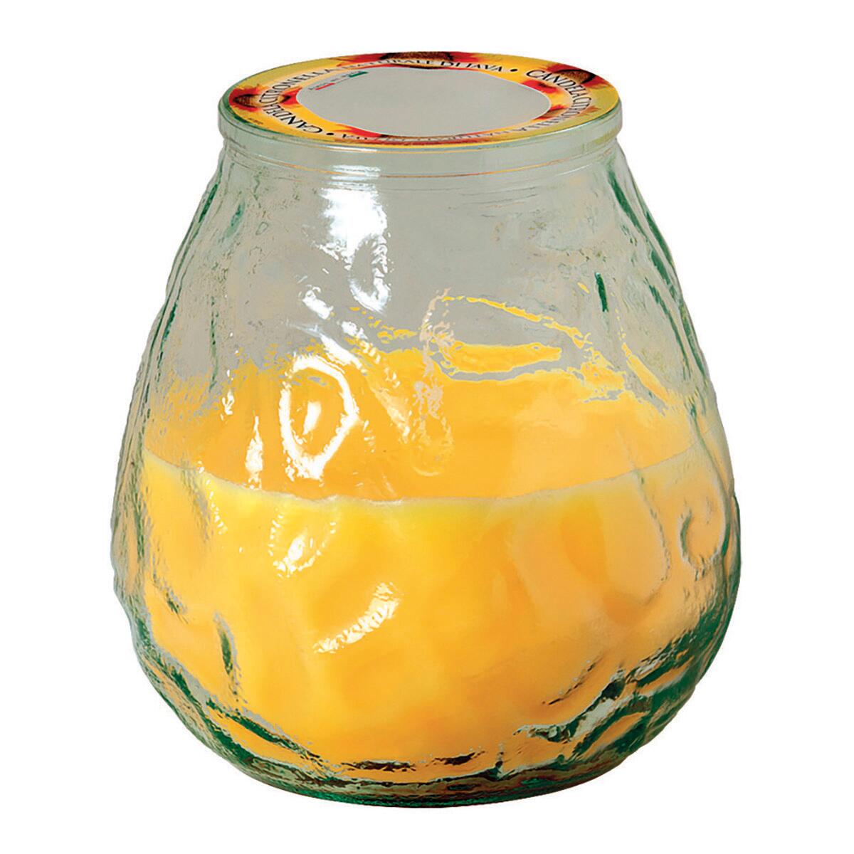 Bicchiere in vetro da cm 10x10,5 con candela alla citronella. Tempo di ardenza +/-30 ore.